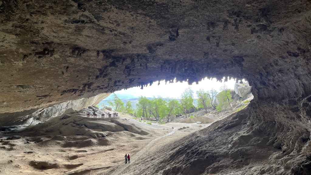 Am Freitag hieß es Wecker stellen und wir mussten uns bereits um 6 Uhr aus den Federn quälen. Normalerweise bin ich unter der Woche jeden Tag um diese Uhrzeit aufgestanden aber wir haben uns mittlerweile schon so an das Ausschlafen gewöhnt als dass es richtig, richtig schwer fällt so früh aus dem Bett zu krabbeln. 🙈 Für diesen Tag hatten wir eine geführte Tagestour durch den Nationalpark „Torres del Paine“ gebucht und wir sollten bereits zwischen 7:00 und 7:30 Uhr an dem Wahrzeichen „El Mano“ (= die Hand) wenige Meter entfernt von unserem Stellplatz abgeholt werden. Nach dem wir zumindest einen Schluck Kaffee getrunken und das Vesper für den Tag in die Rucksäcke gepackt hatten begaben wir uns zu dem besagten Treffpunkt. Dort wurden wir auch pünktlich um halb acht von einem bereits fast voll besetzten Mini-Bus abgeholt. 🚐 Unser Guide „Alice“ stammte aus Brasilien, sprach aber sowohl flüssig Spanisch als auch Englisch. Da die Gruppe hauptsächlich aus englischsprechenden, ausländischen Gästen bestand hatte sie es relativ einfach und musste nicht alles mehrfach wiederholen. Insgesamt bestand die Gruppe aus 14 Reisenden plus unserem Guide sowie dem Fahrer. Wie erhofft spielte das Wetter an diesem Tag wirklich gut mit und wir konnten bereits auf dem Weg in den Nationalpark die drei namensgebenden Türme (= „Torres“) sehen. Oftmals warten Wanderer tagelang auf diesen Anblick, weil sich die Bergspitzen gerne in den Wolken verstecken und wir hatten bereits auf Anhieb solch ein Glück. 😍 Von dem Viewpoint an der „Laguna Armarga“ aus hatten wir einen guten Blick auf das Felsmassiv sowie die Lagune, in der einige chilenische Flamingos nach Nahrung suchten. Vom „Lago Sarmiento Viewpoint“ aus hatten wir ebenfalls herrliche Ausblicke, unter anderem auf das schneebedeckte Massiv des „Macizo Paine“, dem mit 3.500 Metern höchsten Berg innerhalb des Nationalparks. Der nächste Halt war am „Lago Pehoe“ von wo aus wir ein paar Meter bis zum beeindruckenden Wasserfall „Salto Grande“ liefen. Hier zwängen sich die Wassermassen des „Río Paine“ durch eine enge Schlucht und schießen mit gebündelter Kraft über die Felsen hinweg. Weiter ging es zum „Grey Gletscher“ wo wir unter anderem für eine Mittagspause stoppten. Heute waren wir ausnahmsweise auch mal als hop-on/hop-off Foto-Touristen unterwegs. 😅 Dafür konnten wir aber viel in kurzer Zeit sehen, mussten die Schotterpisten nicht alle selbst fahren und konnten das hervorragende Wetter an diesem Tag bestens ausnutzen. Nach dem wir uns im Außenbereich des dortigen Restaurants mit unseren mitgebrachten Sandwiches gestärkt hatten liefen wir noch zum Strand am Gletschersee hinab. Hier blies erstmals und einmalig an diesem Tag ein extrem starker und noch dazu eisig kalter Wind der mir extrem in den Ohren schmerzte. Trotzdem liefen wir bis etwa in die Mitte des Strandes von wo aus wir einen Blick auf die immer noch weit entfernt liegende, gewaltige Gletscherzunge werfen konnten welche den See speist auf dem auch ein kleiner Eisberg schwamm. 🤩 Die südlichen Eisfelder hier bilden übrigens, nach der Antarktis und Grönland, die größten Süßwasserreservoirs der Erde. Zurück im Kleinbus verließen wir gegen 15 Uhr den Nationalpark auch schon wieder um noch einmal außerhalb an einem Viewpoint für ein paar Schnappschüsse zu stoppen. Von hier aus konnte man in der Ferne den Grey Gletscher sowie den „Lago Toro“ und die umliegenden Wälder sehen. Außerdem hatten sich tolle Wolkenformationen gebildete die einem Wattepad oder Frisbeescheiben ähnelten. Sie entstehen durch die besonderen Wetterverhältnisse hier in Patagonien und werden nicht zuletzt durch die starken Winde geformt. Der letzte Halt war an der „Cueva del Milodón“. Sowohl der Eintritt in den Nationalpark (35 USD p.P.) als auch der für die Höhle (11 USD p.P.) waren in dem Tour-Paket von 50 € pro Kopf nicht enthalten. Wir hatten uns die Tickets, auf Bitte des Tour-Veranstalters hin, bereits am Tag zuvor online besorgt. Aber wie schon zuvor im Nationalpark fanden auch an der Höhle keine wirklichen Ticketkontrollen statt. Diesmal wurde unser Ticket nicht einmal gescannt, das Geld hätten wir uns wohl sparen können. 🙄 Die Höhle an sich war enorm groß. Sie entstand durch einen urzeitlichen Gletscher, welcher sich vor Jahrmillionen nach einem Klimawandel in einen Gletschersee verwandelt hatte. Die durch den starken Wind entstandenen Wellen höhlten das Gestein aus und hinterließen diese mächtige Höhle. In dieser wurden 1842 diverse Knochen gefunden, unter anderem auch von dem sagenumwobenen „Milodón“. Hierbei soll es sich um ein zwei bis zweieinhalb Meter großes und eine Tonne schweres Tier gehandelt haben, welches in seiner Gestalt ähnlich der heutigen Faultiere gewesen sein soll. Es lief wohl hauptsächlich auf vier Beinen, konnte aber angeblich auch kurz auf den Hinterläufen sowie seinem Schwanz stehen. In dieser Haltung steht auch eine große Statue am Ortseingang nach „Puerto Natales“. Ob es das Tier so wirklich gegeben hat scheint wohl nicht zu 100% belegt zu sein wobei es im „British Museum“ in London wohl die hier ausgegrabenen Knochen zu sehen gibt. 🤷♀️ Von der Höhle aus war es nur noch ein Katzensprung zurück in den Ort so dass wir gegen 18 Uhr wieder an unserem Van abgesetzt wurden. Obwohl wir an diesem Tag nicht viel laufen mussten war ich abends doch ganz schön erschöpft. Vermutlich auf Grund der vielen Eindrücke, vielleicht war es aber auch mit dem frühen Aufstehen geschuldet. 🙊 Ich ruhte mich ein wenig aus während Simon die 20 Liter aus unserem Reservekanister ins Auto schüttete. Wir hoffen, dass wir so ohne einen Tankstopp in Chile (hier kostet der Liter Diesel ca. 1,40 €) zurück nach Argentinien gelangen werden wo uns der Liter Diesel nur noch rund 70 Cent kosten wird. Nach meinem Powernap drehten wir noch eine kurze Runde durch den Ort, um im Supermarkt noc