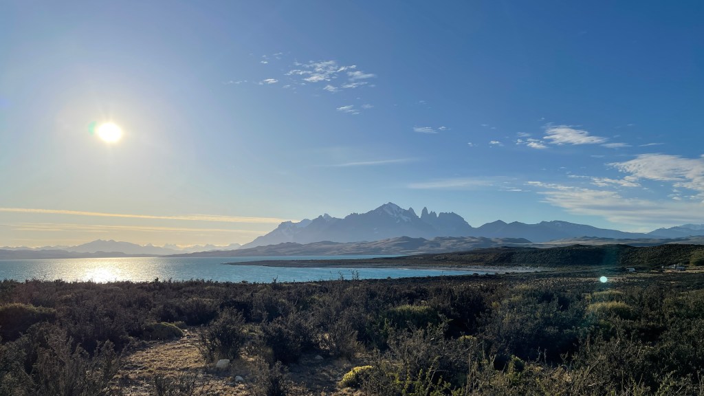 Da unsere Muskeln und Füße von der langen Vortageswanderung noch etwas schmerzten, verbrachten wir den Sonntag relativ bewegungsarm in unserem Van auf dem Wanderparkplatz. Hier hatten wir, zu Füßen der „Torres del Paine“, auch eine sehr ruhige Nacht verbracht. Simon nutzte die Zeit um weitere YouTube Videos zu erstellen und ich benötigte eine ganze Weile, um die Erlebnisse der vergangenen zwei Tage für den Blog zusammenzufassen. 😄 Das Wetter spielte erneut richtig gut mit, wenngleich es ein wenig bewölkter war als die Tage zuvor. Dafür war es mit 21°C noch wärmer und nachmittags wurde es fast ein bisschen schwül. Prompt meldete sich leider auch mein Heuschnupfen mit sämtlichen Symptomen. 🤧 Am Abend rollte ich dann noch seit längerem mal wieder die Yoga-Matte aus und genoss die Zeit für mich in dieser herrlichen Kulisse. 💕