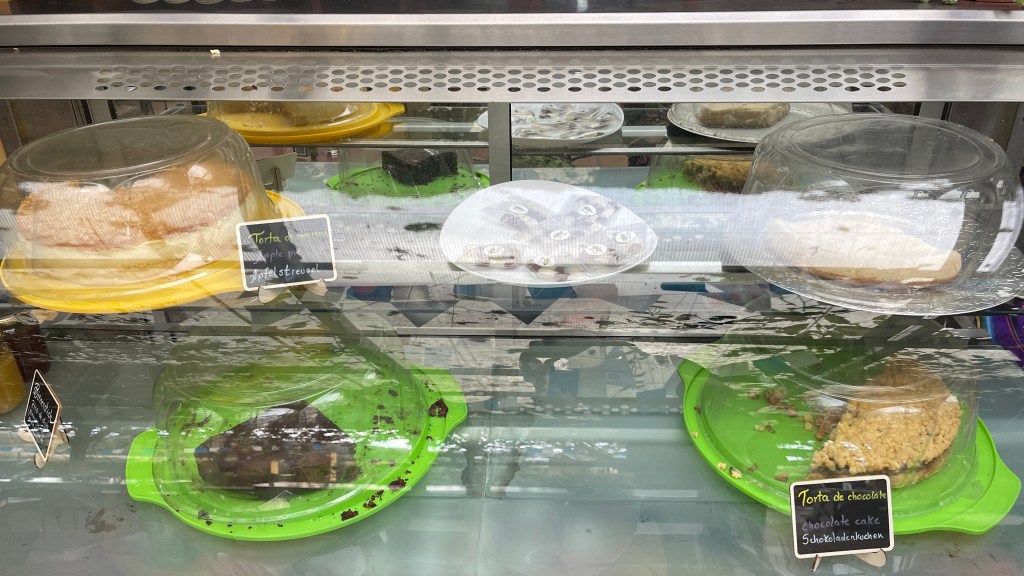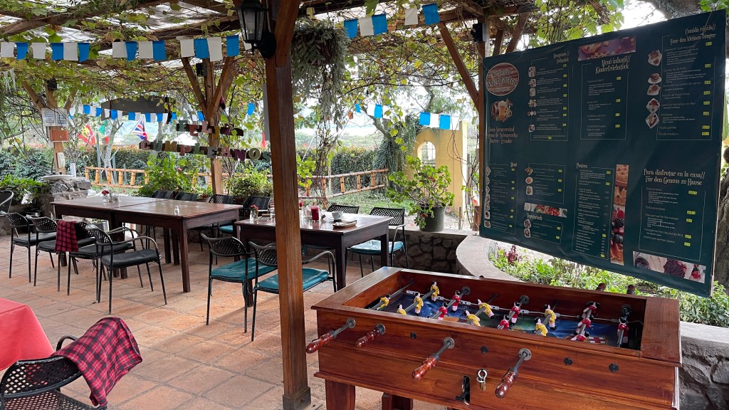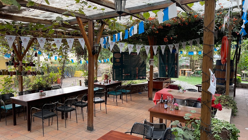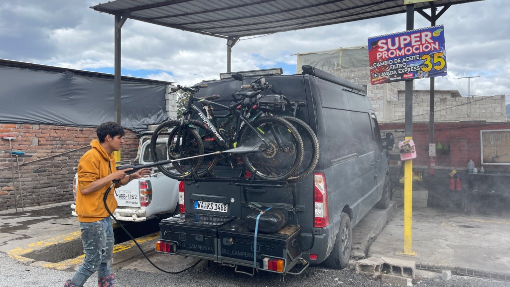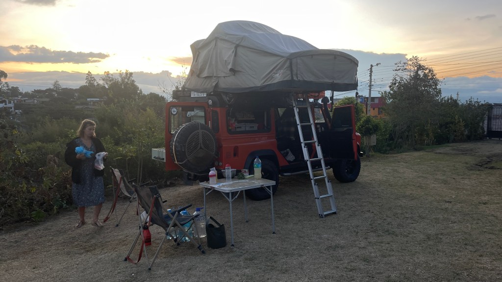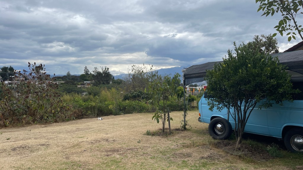 Donnerstagsmorgens setzten wir unsere Reise fort und machten uns auf den Weg zur Finca Sommerwind. Während der Fahrt hielten wir noch an einer schicken Einkaufsmall an, um die für die anstehende Verschiffung nach Kolumbien benötigten USD abzuheben. Auf diese Weise werden wir uns nämlich die 5% Kreditkartengebühr sparen können. 😊 Kurz darauf kamen wir auf dem, etwas außerhalb von Ibarra an einem See gelegenen, Campingplatz an. Dieser wurde vor 18 Jahren von dem aus Norddeutschland stammenden Hans gegründet. Wie es der Zufall so wollte war er erst vor kurzem auf Heimaturlaub, weswegen er uns freundlicherweise das von uns benötigte Ersatzteil aus Deutschland mitbringen konnte. 😀 Nach dem wir uns registriert hatten übergab er uns den Luftmassenmesser welchen Simon sofort installierte. Dem ersten Anschein nach scheint der Fehler auch verschwunden zu sein aber genau wissen werden wir das erst, nachdem wir ein paar Kilometer gefahren sind. Da dies der erste richtig schöne Campground auf unserer Reise war blieben wir ein paar Tage, um die Einrichtungen zu nutzen. Ich wusch u.a. zwei Ladungen Wäsche während Simon gleich zweimal den Grill nutzte. Auch der Restaurantbereich war toll gemacht und entsprach optisch einem deutschen Biergarten. Daran orientierte sich auch die Speisekarte: Von Currywurst mit Pommes über Leberkäs mit Bratkartoffeln bis hin zu Reibekuchen mit Apfelmus gab es hier allerlei deftige Hausmannskost. Aber auch eine tolle Kuchentheke mit Bienenstich und Streuselkuchen war vorhanden. Nicht zu vergessen: Der große, gut mit diversen deutschen Biersorten, bestückte Kühlschrank. 😋🍻