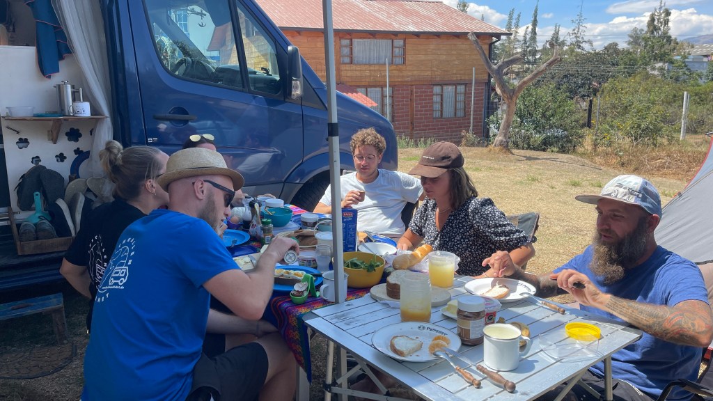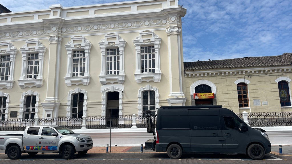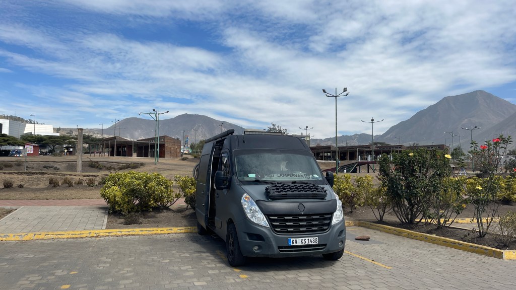 Widererwarten hatten wir eine unheimlich ruhige Nacht und wachten erst nach 08:00 Uhr auf. Und dass, obwohl wir mitten in der Stadt geschlafen hatten! 😅 Scheinbar setzte der Verkehr hier erst später ein und in der Nacht war es um uns herum totenstill gewesen. Nach einem Schluck Kaffee liefen wir die Straße hinab bis zum Markt welcher dafür sorgt, dass Otavalo DIE Touristenattraktion schlechthin im Norden Ecuadors ist. Wir fanden die hier dargebotenen Waren, die vom bunten Poncho über farbenfrohe Bilder sowie Schmuck reichten, schön aber weit weniger besonders als beispielsweise in Pisac/Peru. Deswegen beendeten wir unseren Rundgang auch relativ schnell und machten uns auf die Suche nach einem Frühstückscafé mit WLAN. Unser Datenvolumen war nämlich so gut wie erschöpft, aber da wir in wenigen Tagen die Grenze nach Kolumbien überqueren wollten kam eine erneute Aufladung nicht in Frage. Zumal wir die verbleibende Zeit bis dahin sowieso auf einem Campingplatz in Ibarra (inkl. WLAN) verbringen wollten. Nach dem Frühstück fuhren wir dann noch einmal zurück an den ruhigen Stellplatz am See, um den Rest des Tages noch ein wenig zu arbeiten. 💻