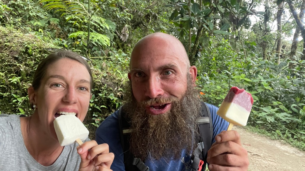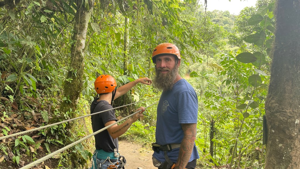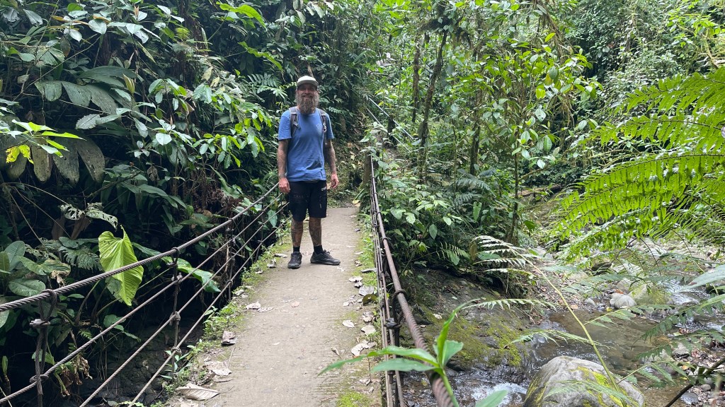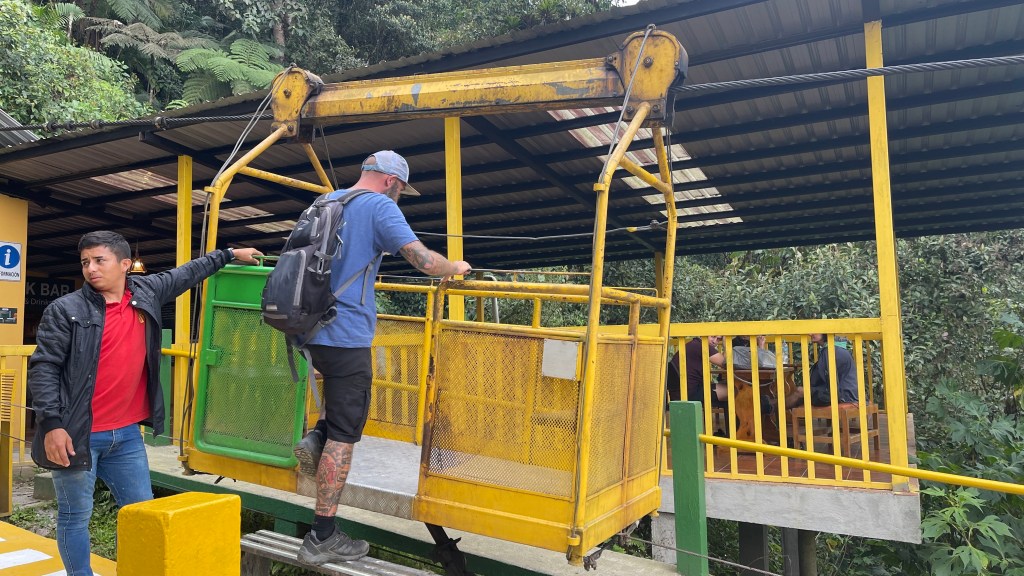 Obwohl die von uns gewählte Sackgasse in Mindo für eine ruhige Nacht sorgte, schliefen wir auf Grund der urplötzlich wieder wärmeren Temperaturen auf nur noch 1.250 Metern üNN nicht so wirklich gut. Da wir aber auch einiges unternehmen wollten schadete es nicht früh dran zu sein und so machten wir uns direkt nach dem Kaffee auf den Weg zur Seilbahn „Tarabita“. Leider schickte uns MAPS.ME eine falsche Straße entlang und wir schafften es nur knapp, ohne uns festzufahren, gerade noch rechtzeitig zu wenden. 😣 Kurz darauf erreichten wir die richtige Straße und keine fünf Kilometer später kamen wir am Wanderparkplatz an. Wir erholten uns kurz von dem Schrecken bevor wir erst einmal etwas frühstückten. Da ich zwischenzeitlich schon wieder von ein paar fiesen Sandflies attackiert worden war entschloss ich mich diesmal für eine leichte, lange Hose zumal der Himmel neuerdings bedeckt war. Wobei es bei einer Lufttemperatur von immerhin 24°C sowie einer Luftfeuchtigkeit von stolzen 81% dennoch unangenehm schwül war. Wie bereits zuvor in „Baños“ ging es wieder mit einem, diesmal Gelben, cable car über die Schlucht hinüber auf die andere Seite. Dort befanden sich drei verschiedene Wanderwege mitten im Regenwald die alle zu einem oder mehreren Wasserfällen führen. Wir wählten die „Ruta 3“ welche uns zu insgesamt sechs verschiedenen Kaskaden bringen sollte. Da der Weg kein Rundweg war liefen wir diesen direkt bis zum Ende durch um das Feld quasi von hinten aufzurollen. 😜 Die Wasserfälle waren nicht sonderlich hoch, boten dafür aber immer mal wieder Gelegenheit für ein Bad. Entweder direkt unter den Sturzbächen oder aber in den darunterliegenden Pools. Da uns dies zuvor nicht klar war und wir zudem nicht wussten, dass die Wassertemperatur ganz angenehm war, hatten wir leider keine Badesachen dabei weswegen wir auf die Abkühlung verzichten mussten. Diese kam uns dann auf dem Rückweg in Form eines Eisverkäufers unverhoffter Weise doch noch zu gute. 😅 Das 5$ teure Seilbahnticket beinhaltete Hin- und Rückfahrt und wir freuten uns auf dem Weg zurück noch einmal über das kurze Gefühl von schweben. Von hier aus ging es mit dem Auto nicht weiter so dass wir den gleichen Weg zurück in den Ort nehmen mussten. Entlang diesem gab es zwei verschiedene Zip Line Anbieter und weil ich das ja sooo gerne mag begleitete mich Simon über sieben verschiedene Lines hinweg. 😃 Der Spaß kostete pro Kopf 15$, war es aber auch wert. Uns begleiteten gleich zwei Guides, einer vorweg und eine hinterher, und auch das Equipment war vom Feinsten. Wir hätten alternativ auch 10 statt 7 Lines wählen können. Jedoch hätte uns das jeweils 5$ mehr gekostet und schlussendlich waren wir mit den rund 40 Minuten fliegen sehr zufrieden. Kurz vor 16 Uhr kamen wir wieder in „unserer“ Sackgasse an und kaum hatten wir ein paar Happen gegessen fielen auch schon die ersten dicken Regentropfen. 🌧