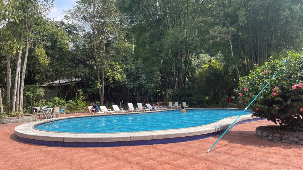 Da wird dringend mal wieder eine Dusche nötig hatten verbrachten wir den Sonntag auf dem Gelände des schicken Hotel & Resort „Kumbha Mela“. Für die 10$, die wir für den Stellplatz auf dem Hotelparkplatz bezahlten, bekamen wir nicht gerade viel geboten. Immerhin konnten wir die Toiletten und Duschen am Pool benutzen wobei letztere viel kälter als das unbeheizte, wirklich schöne Schwimmbecken waren. 🥶 Deswegen verschoben wir die Gedanken an die Körperpflege erst einmal und füllten stattdessen mit einem vorhandenen Schlauch unseren völlig leeren 120 Liter Wassertank auf. Anschließend widmeten wir uns der Fertigstellung eines neuen Videos und da es diesmal so einiges zum nachvertonen gab kostete es, vor allem mich, einiges mehr an Schweiß und Nerven weswegen ich mir für 5$ extra einige Runden im Pool gönnte. ☺ Auch das WLAN war ganz ordentlich so dass ich am Abend noch den nächsten Blog bebildern und zusammen mit Simon den neuen Mission Impossible Film streamen konnte.
