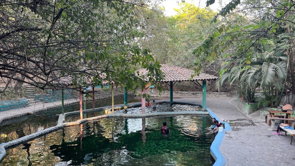 Für die Nacht fanden wir einen ruhigen und sicheren Schlafplatz bei einer Naturtherme, deren Becken von einem heißen Fluss gespeist wurden. Als Bonus genossen wir am Abend, als es endlich ein paar Grad kühler wurde, ein wohltuendes Bad und entspannten uns nach einem weiteren ereignisreichen Tag. Mal wieder als einzige Gringos zwischen all den Einheimischen.