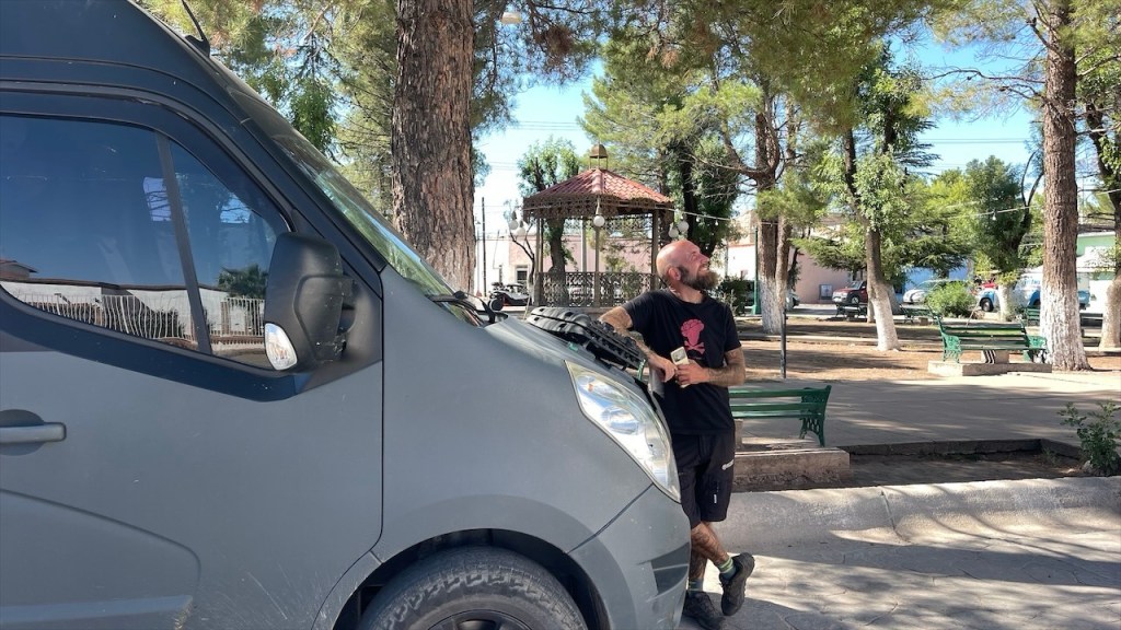 Nach einem endlos langen Fahrtag erreichten wir spät abends eine Autobahnraststätte kurz vor Fresnillo. Wir waren erledigt und freuten uns auf ein schnelles Abendessen. Doch als Simon beim Routine-Check bemerkte, dass mal wieder einer unserer hinteren Stoßdämpfer aus der Verankerung gerissen war, rutschte mir das Herz in die Hose. ❤️🩹 Und als wäre das nicht schon genug, funktionierte auch unsere Handbremse, die wir gerade erst hatten reparieren lassen, überhaupt nicht mehr. Mexico bringt uns echt kein Glück! 🙈