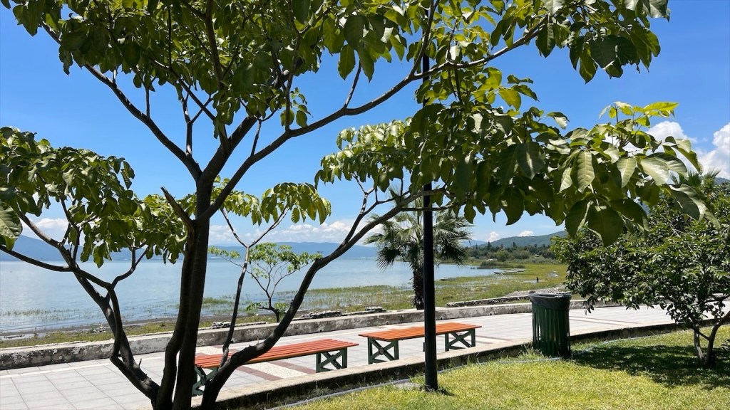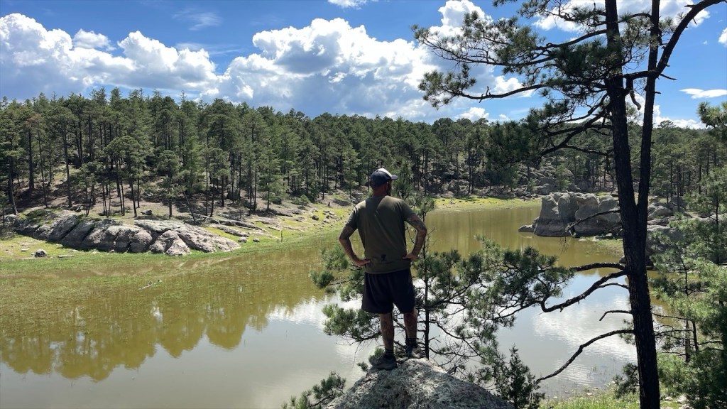 Unsere morgendliche Aktivität bestand darin, den See zu Fuß zu umrunden. Die 6 km lange Strecke zog sich über etwa zwei Stunden hin, da der See eine ziemlich unförmige Gestalt hatte. Aber die Mühe lohnte sich: Immer wieder boten sich uns großartige Ausblicke auf die felsigen Landschaften, die das Gewässer umgaben. Besonders entzückend waren die Streifenhörnchen, die wir zwischen den Felsen herumspringen sahen. Zum ersten Mal auf unserer Reise trafen wir auf diese possierlichen Nagetiere. 🐿