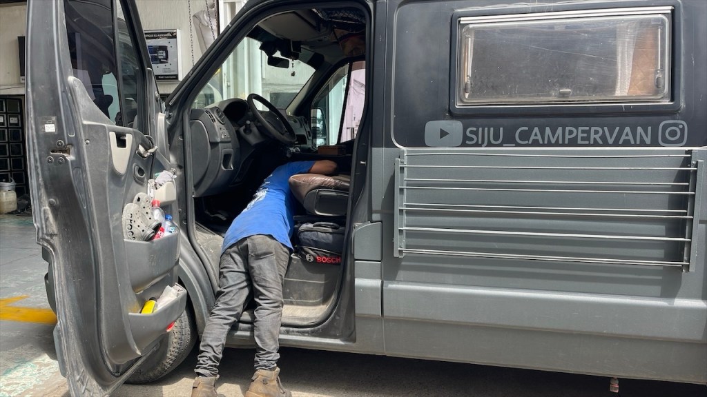 Für den gesamten Service bezahlten wir, inklusive 10l Motoröl und Filterwechsel, etwa 120 €. Und trotz der Tatsache, dass Simon den Großteil der Arbeit selbst erledigt hatte, ließen wir Jakob das Doppelte seines mageren Honorars von gerade einmal 10€ zukommen. Der arme Kerl tat uns schlichtweg furchtbar leid. 😥 Nach dem herzlichen Abschied hinterließen wir noch eine positive Bewertung auf Google Maps und trugen die Werkstatt in die iOverlander-App ein. Vielleicht verirrt sich auf diesem Wege noch die ein oder andere Kundschaft mehr zu ihm.