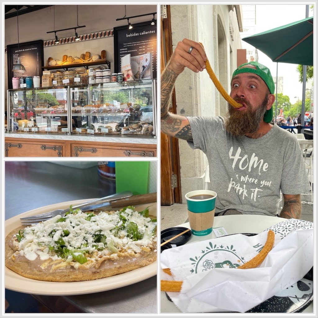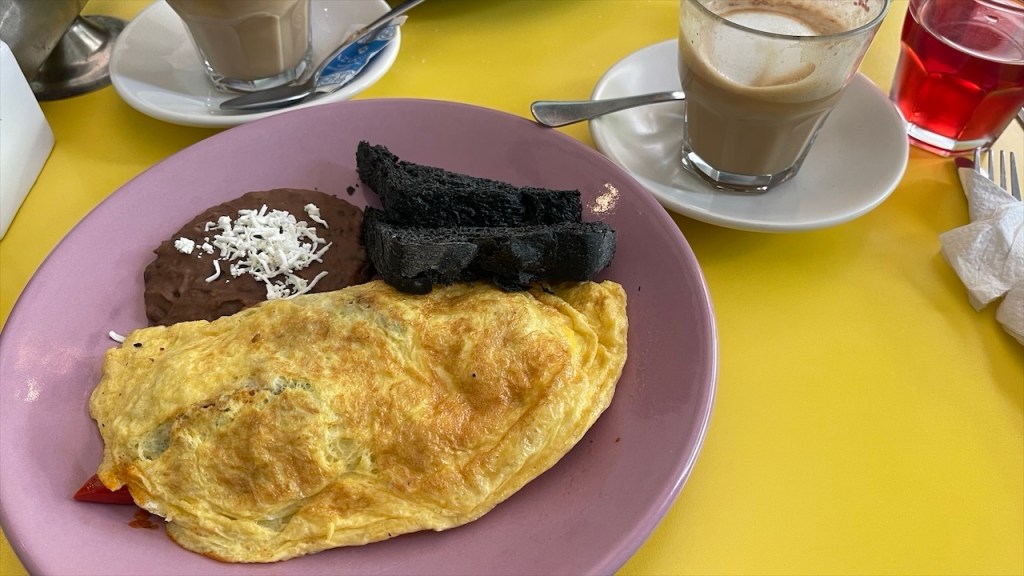 Am nächsten Morgen machten wir uns erneut zu Fuß auf den Weg zur Handyklinik, um uns unser Geld zurückerstatten zu lassen. Auf dem Weg stießen wir zufällig auf ein gut besetztes Frühstückslokal. Der spontane Stopp erwies sich als goldrichtig, denn sowohl die Chilaquiles Rojo als auch die Enchiladas Verde schmeckten fantastisch. Für gerade einmal sieben Euro pro Person bekamen wir außerdem Kaffee, Saft und Brot gereicht. 😃 Außerdem lernten wir dabei sogar noch etwas Neues: Die Bezeichnungen Rojo und Verde beziehen sich in diesem Fall auf die verwendete Tomatensorte. In Mexiko sind grüne Tomaten nämlich eine beliebte Zutat. 🍅