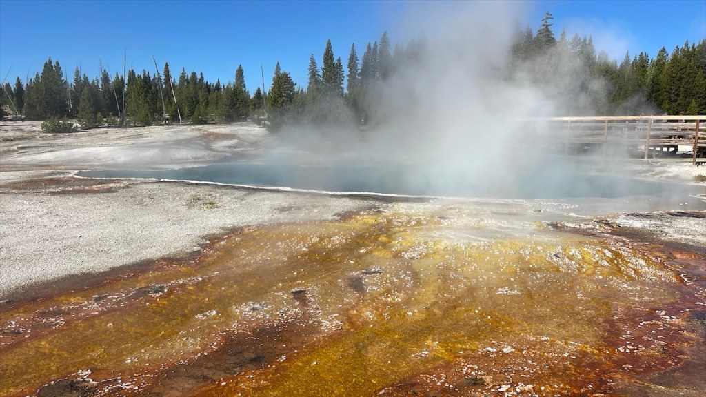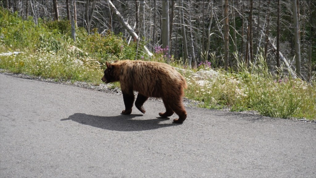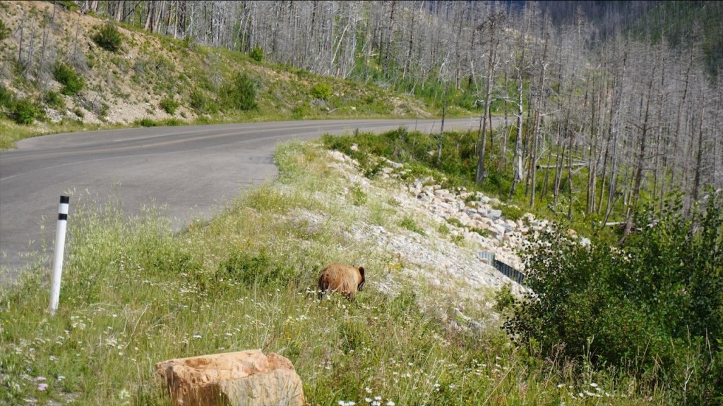 Und als wir den Park am Nachmittag gerade wieder verlassen wollten gab es die erste Grizzlybären-Sichtung! Einmal sahen wir den kleinen Bären ganz nah, einmal in perfekter Foto- und Videoentfernung. 🐻