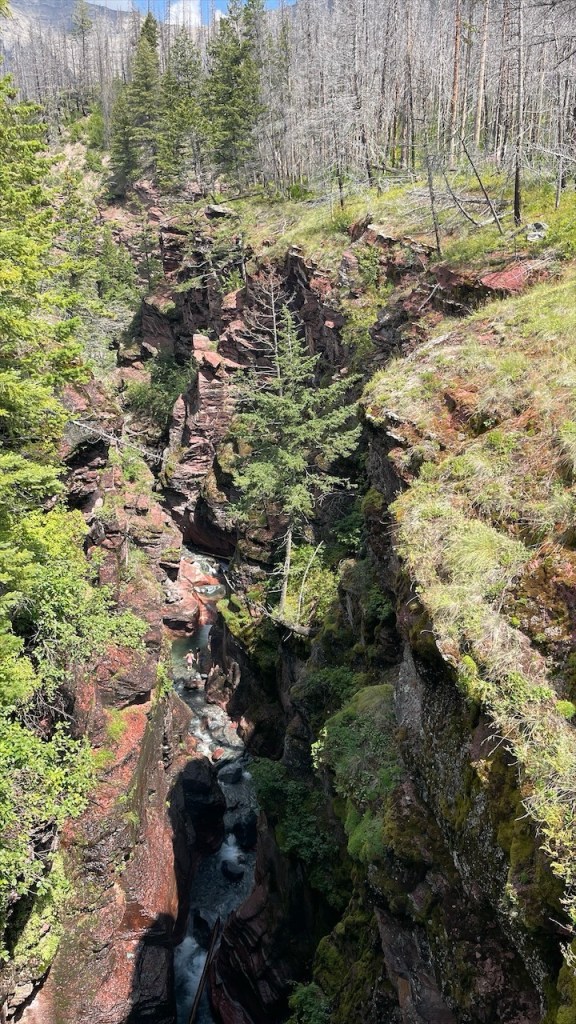 Eigentlich wollten wir vor dem Grenzübertritt nach Kanada noch die berühmte Wanderung zum Grinnell Gletscher machen – doch leider erfuhren wir zu spät, dass man sich für den Hiker Shuttle auf der Many Glacier Road separat registrieren muss. 😕