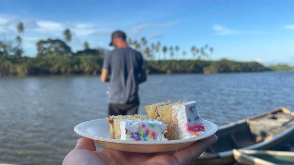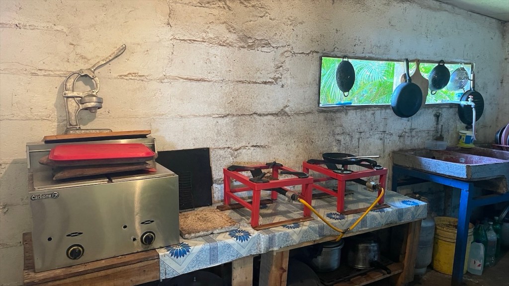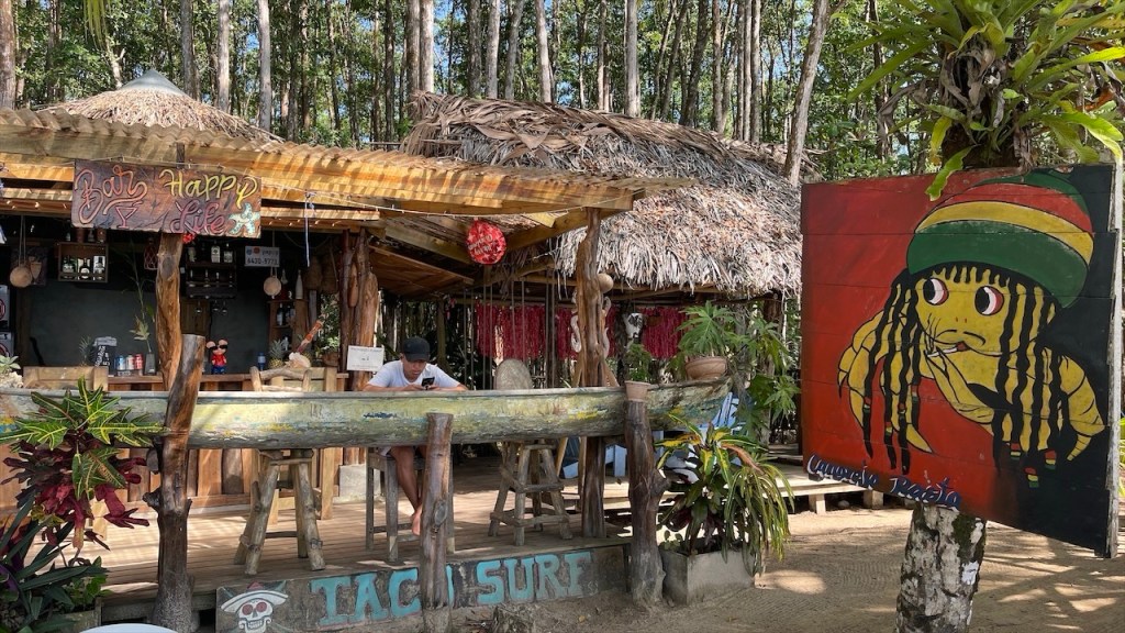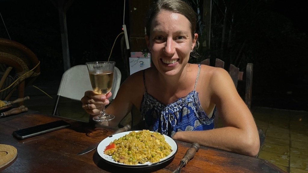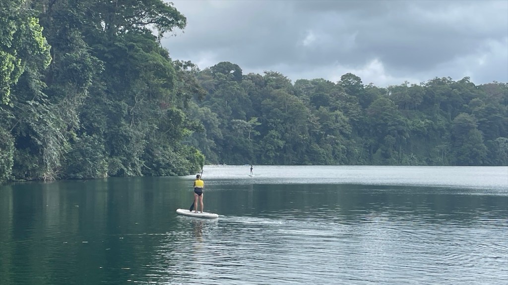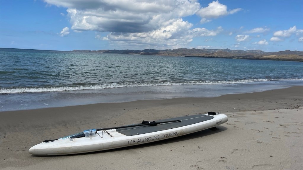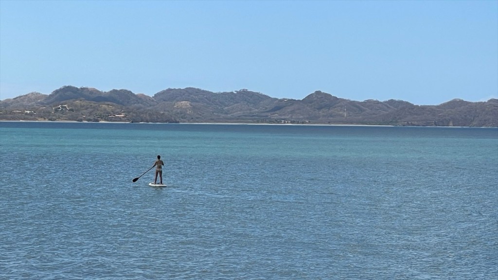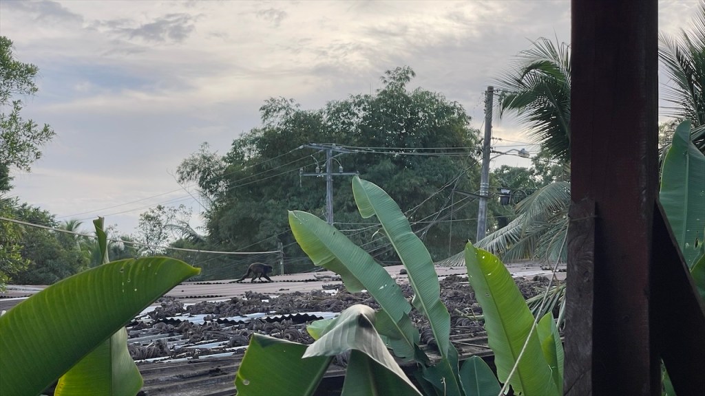 Am nächsten Tag wurde ich gegen 04:00 Uhr zum ersten Mal vom Krähen des Hahnes wach und alsbald begannen auch die vielen wilden Sittiche mit ihrem lauten Geschnatter. Da fiel das Aufstehen um 06:00 Uhr, als ausnahmsweise der Wecker klingelte, doch gar nicht mehr so schwer. 😅 Eine Stunde später waren wir nämlich mit Dahiana, einer Urlauberin aus Frankreich, verabredet die sich hier für 10$ ein Einerkajak gemietet hatte. Da sie die Tour jedoch nicht alleine unternehmen wollte hatte sie uns am Vortag gefragt, ob sie sich uns anschließen könne was wir selbstverständlich bejahten. Allerdings entschieden wir uns spontan gegen das 20$ teure Doppelkajak und für unser SUP von @paddelbrett. Bis dato hatten wir es zwar noch nie gemeinsam benutzt aber immerhin ist es ja dafür ausgelegt und wofür schleppen wir das Teil sonst mit! Im Sitzen ging das Paddeln zu zweit leicht und als wir in die Flussmündung einbogen stand Simon hinter mir sogar auf. Ich legte derweil mein Paddel zur Seite und kümmerte mich stattdessen ums Filmen und Fotografieren. 📸 Neben ziemlich vielen Vögeln, darunter auch stattliche Graureiher, konnten wir außerdem einen gut in den Mangroven getarnten kleinen Kaiman sowie eine Wasserschildkröte sehen. Etwa zwei Stunden später gelangten wir wieder am Ausgangspunkt an, wo Max und Merle sich gerade im Restaurant ihr Frühstück bestellt hatten was wir ihnen gleichtaten. Später durfte ich dann noch die nette Bekanntschaft mit Rosita machen, dem plappernden grünen Papageien der Familie. 😀 Neben dem Vogel besitzen sie noch drei oder vier Hunde, eine Katze, etliche Schweine und Hühner sowie ein paar Rinder. In Nicaragua lebt man heute noch wie in Europa vor hundert Jahren und so ist es ganz normal, dass sich die meisten Familien Nutztiere halten und größtenteils selbstversorgen. Auch fließend Wasser ist kein Standard weshalb wir uns nicht weiter wunderten, dass neben der Toilettenschüssel volle Wassereimer und eine Schöpfkelle standen. Die Dusche, die lediglich aus einem Rohr an der Wand bestand, war wohl intakt aber die Toilettenspülung nicht. Auch der Herd wird hier keinesfalls elektrisch und nicht einmal mit Gas, sondern noch mit Holz betrieben. Unser leckeres Frühstück wurde also auf offener Flamme zubereitet. Und ehe wir uns versahen war auch dieser Tag, nach einer weiteren Runde mit dem SUP bzw. einer Schwimmeinheit, schon wieder vorbei. 😴