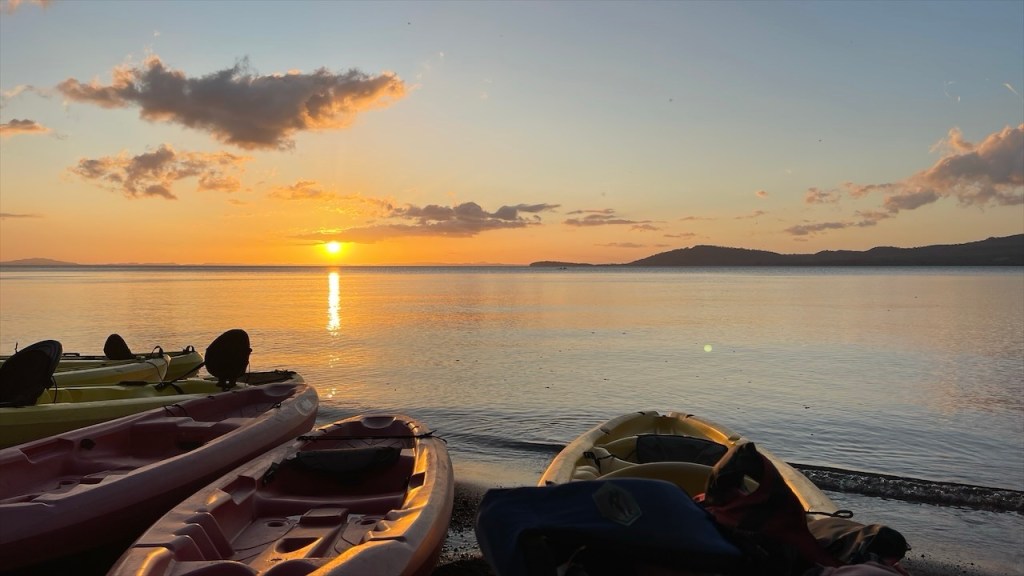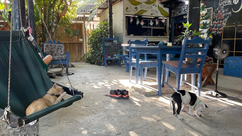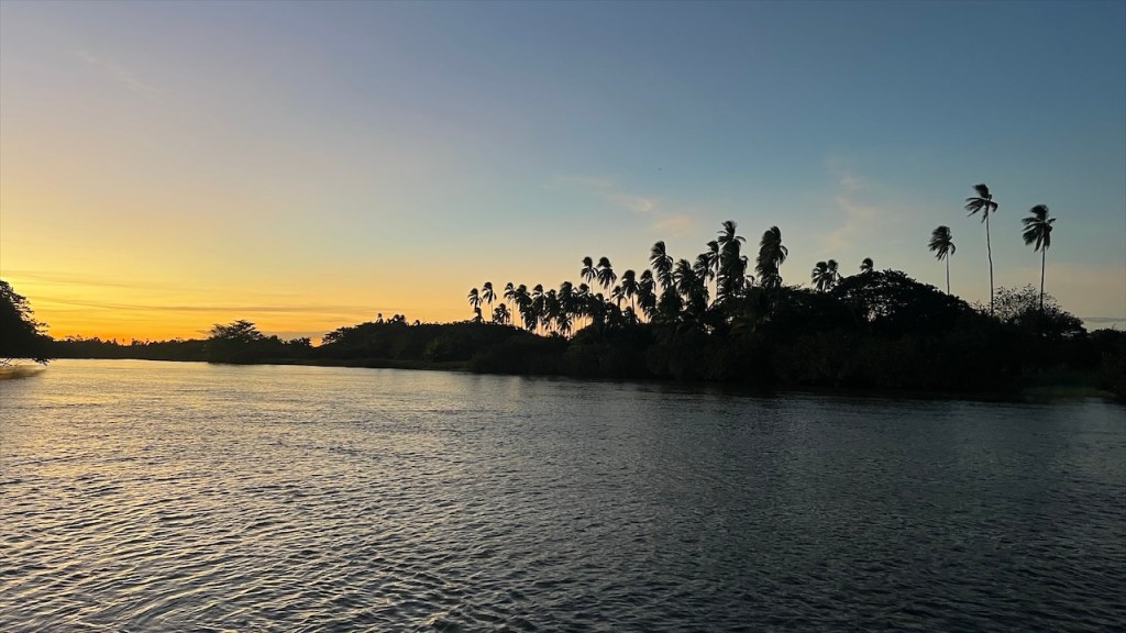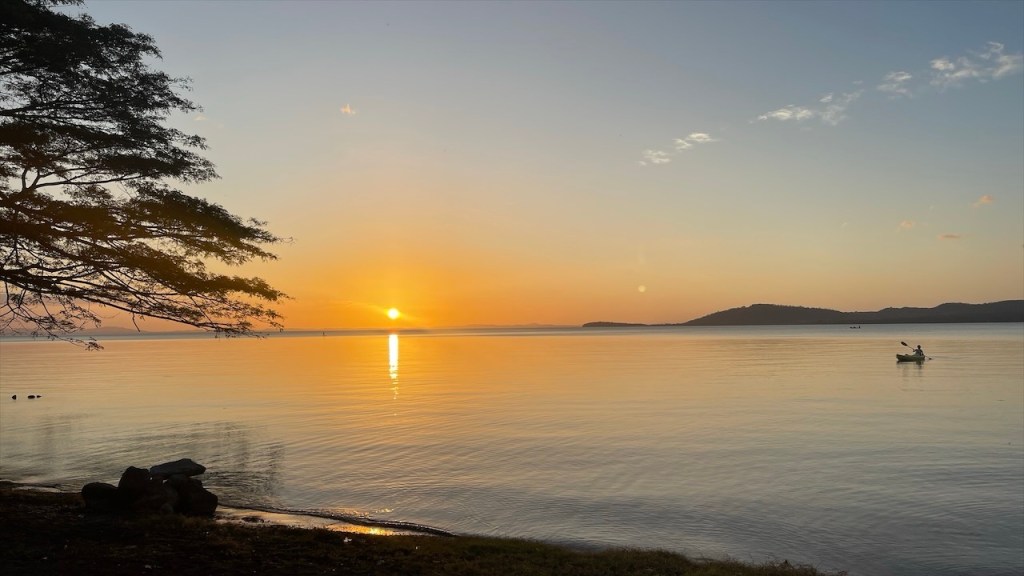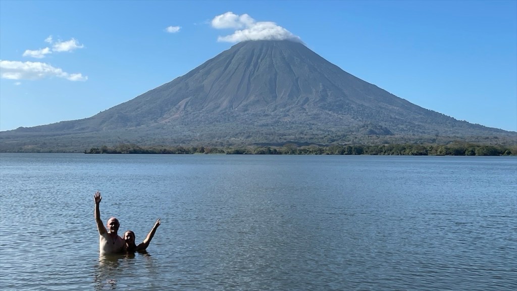 Sonntagsmorgens durchquerten wir den Isthmus und wechselten auf die andere Seite. An der schmalsten Stelle der Insel befindet sich die schöne Playa Mango, die ihren Namen von den vielen Mangobäumen hat die hier bestens zu gedeihen scheinen. Neuerdings tauschten wir Kost gegen Logis, in dem wir beim Restaurante Mirador del Concepción y Kayak Tours für 4 € pro Person ein leckeres, reichhaltiges Frühstück zu uns nahmen. Im Gegenzug erlaubte uns der Inhaber Gabriel die kostenfreie Übernachtung gegenüber des Restaurants. Dieses befand sich in einer Sackgasse, lag direkt am See und bot wunderschöne Aussicht auf den aktiven Vulkan Concepción. Laut Aussage der hier sesshaften Familie liegt der letzte Ausbruch etwa acht Jahre zurück. Wir machten es uns unter anderem in den bereitstehenden Hängematten bequem und badeten in dem angenehm warmen See. Dieser lud am späten Mittag, als die Temperaturen ihren Höchstpunkt erreicht hatten, geradezu zum Schwimmen ein und ich bin selten irgendwo mit derart schöner Aussicht geschwommen. Wenige Stunden nach unserer Ankunft stießen unsere Freunde von @anschnallenabfahrt dazu und gemeinsam genossen wir den traumhaften Sonnenuntergang über dem Nicaragua See. 🌅
