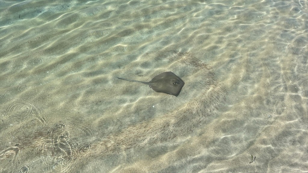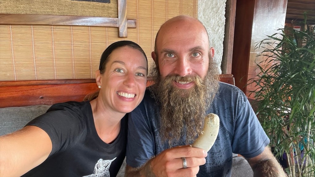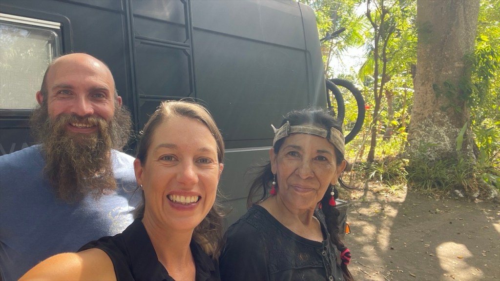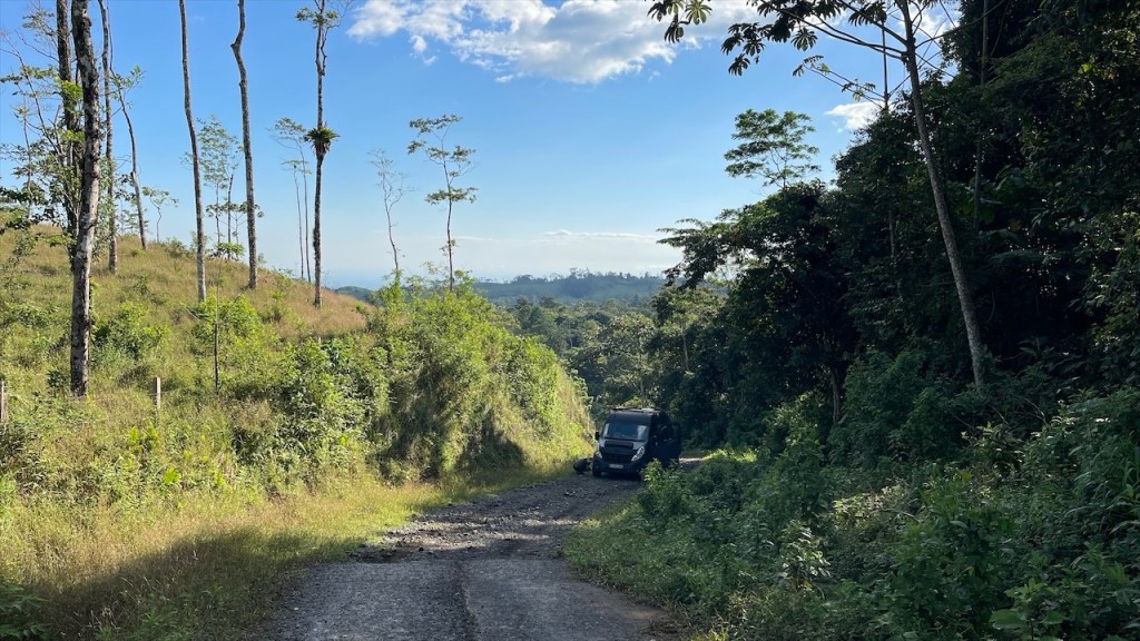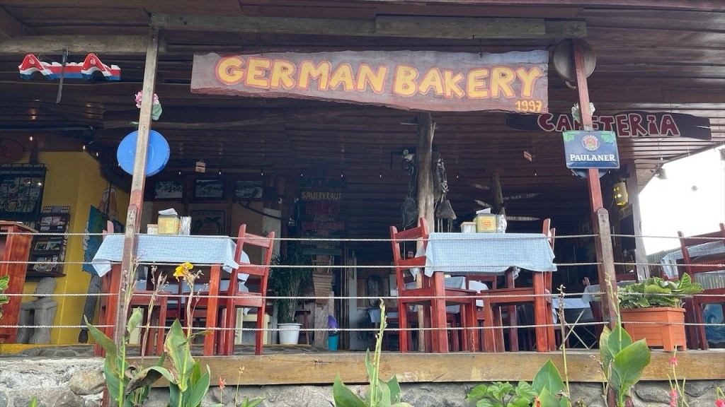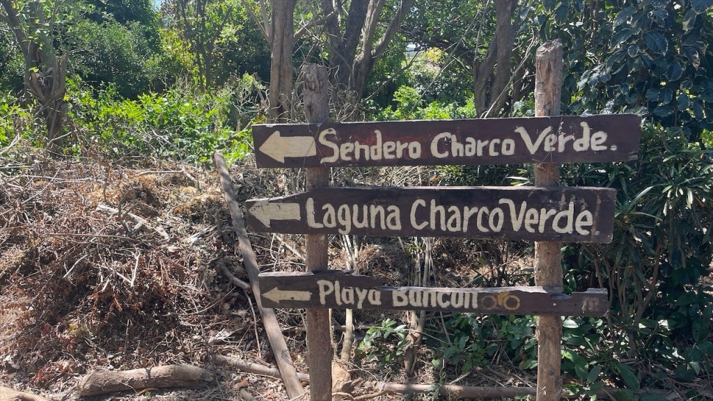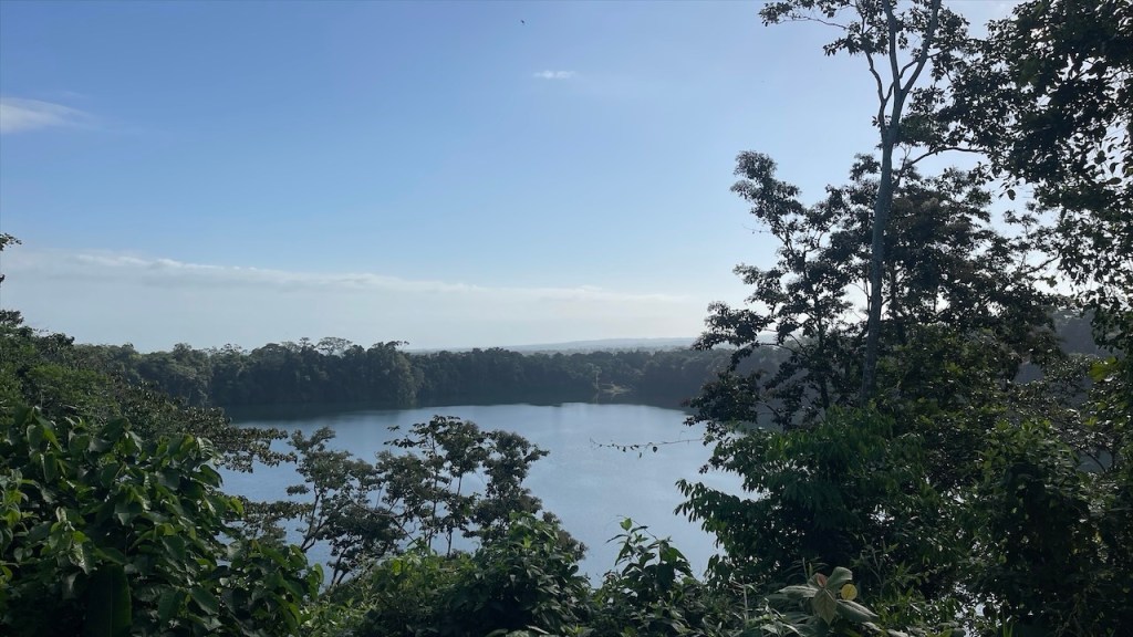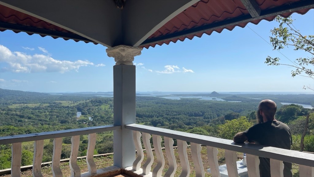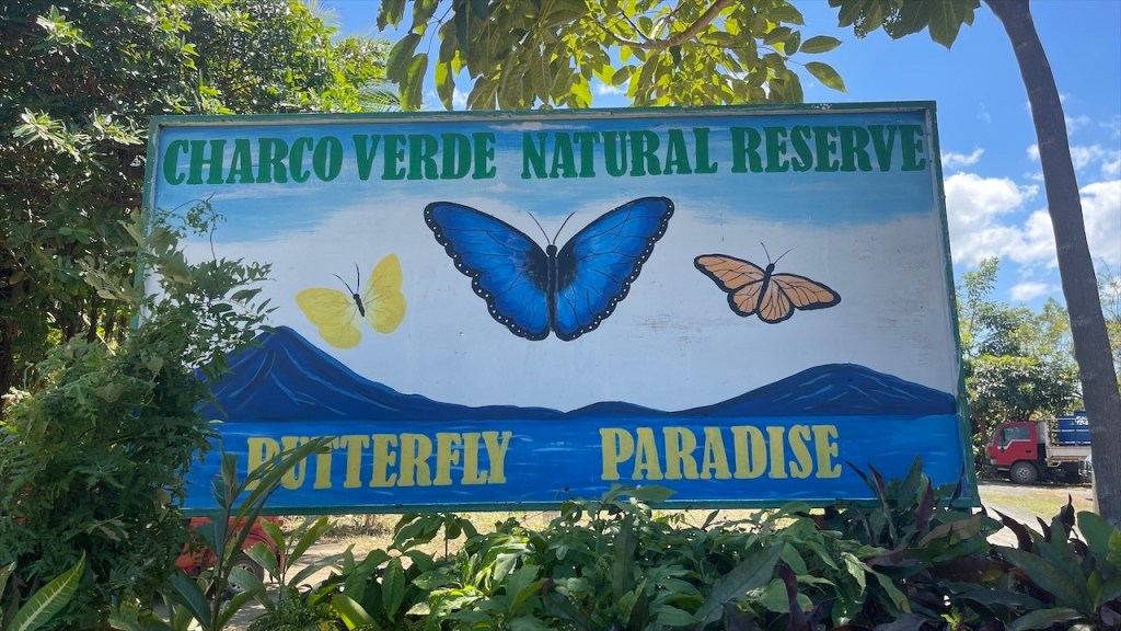 Am nächsten Morgen sagten wir Doña Nela und ihren zwei Töchtern, nach dem wir ihnen als Dank für ihre Gastfreundschaft 5€ überreicht hatten, bereits wieder Lebewohl. Allerdings kamen wir nur wenige Meter weit denn an der Einfahrt des Weges zu ihrem Grundstück, an dem sich am Vorabend noch eine Warnbarke befunden hatte, klaffte nun ein großes tiefes Loch im Erdboden. 😯 Ein Vorbeikommen war unmöglich und nachdem die beiden Arbeiter zuerst meinten, es würde ein ganzes Weilchen dauern bis der Bagger wiederkäme erschien er dann doch viel schneller als erwartet. Ruckzuck war der Betondeckel wieder auf dem Schacht, etwas Erde darüber geschaufelt und wir konnten unsere Fahrt fortsetzen. 😃 Unser erster Halt auf der überschaubaren Insel mit den Doppelvulkanen war das Naturschutzgebiet Charco Verde. Nach dem wir pro Kopf 5$ bezahlt hatten durften wir das Gelände betreten auf dem sich insgesamt drei Naturpfade befinden. Wir umrundeten die Laguna Verde, von der aus man schöne Aussicht auf die beiden Vulkane hat, und konnten neben den blau-weißen Elstern mit ihrem hübschen Kopfschmuck die größte Brüllaffenbande unserer gesamten Reise ausmachen die aus gut und gerne zwanzig Tieren bestand. 🐒 Danach besuchten wir das Schmetterling Haus, wo neben dem für Mittelamerika typischen Morpho Azul auch ein paar weitere Arten umherflatterten. Last but not least gingen wir noch einen kurzen Rundweg bis zu einem Aussichtspunkt, von dem aus man nicht nur die Lagune sowie den riesigen Nicaraguasee, sondern auch Teile des Festlands sehen konnte. Weiter gings in Richtung des grünen Vulkan Maderas, wo wir oberhalb des schönen Strandes Playa Santo Domingo beim Restaurant Comedor Julia freundlicherweise die Erlaubnis erhielten, kostenfrei auf einem von nur zwei Parkplätzen zu nächtigen. 🥰 Liebend gerne revanchierten wir uns dafür mit einem Mittagessen in ihrem Lokal, von dessen Terrasse aus man einen tollen Blick auf See und Strand hat. Wir bestellten zwei frische Fruchtsäfte und teilten uns ein leckeres Tellergericht, da wir am Abend unbedingt noch den von Simon gefangenen Fisch zubereiten wollten. Nach einem Bad im See hatten wir gerade wieder an einem der Tische Platz genommen und uns einen Kaffee bestellt als plötzlich unsere Bremer Freunde um die Ecke bogen. 😃 Neuerdings unabgesprochen da wir seit verlassen Costa Ricas offline waren und wir nicht einmal gewusst hatten, ob sie es vor uns noch auf eine Fähre geschafft hatten oder doch auf dem Festland geblieben waren. Also bestellten wir noch ein weiteres Getränk, während die beiden aßen, und ließen den Tag gemütlich zu viert ausklingen. ❤