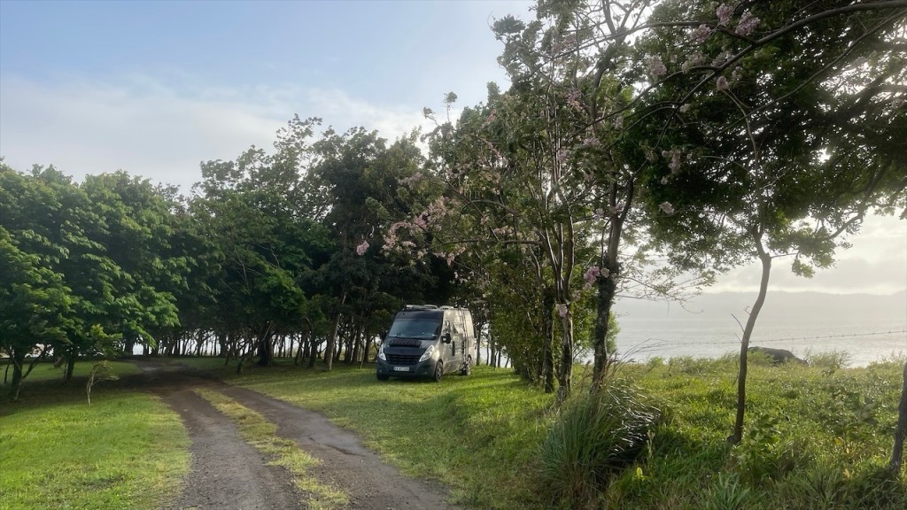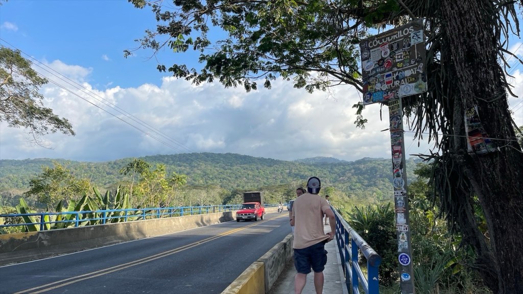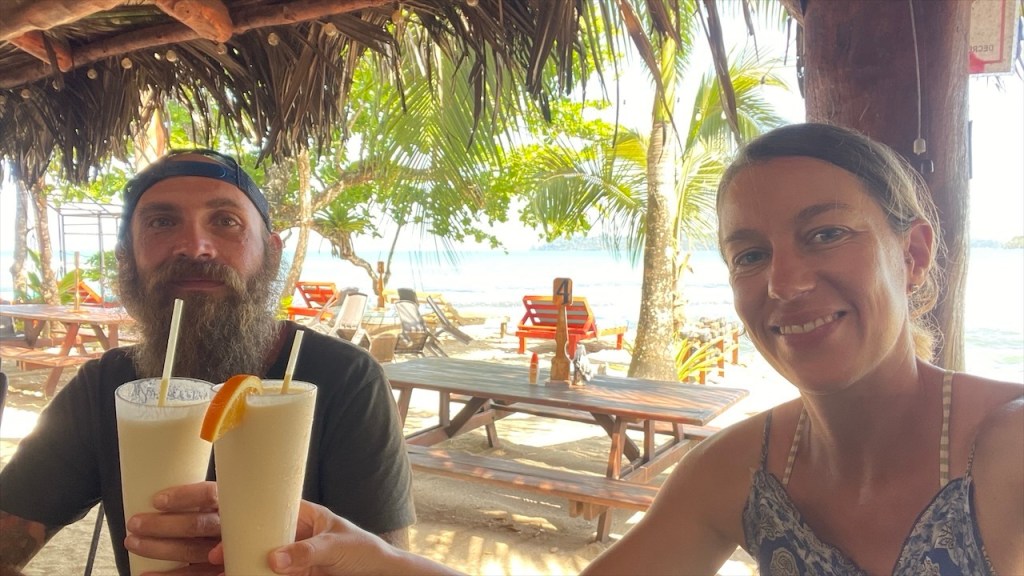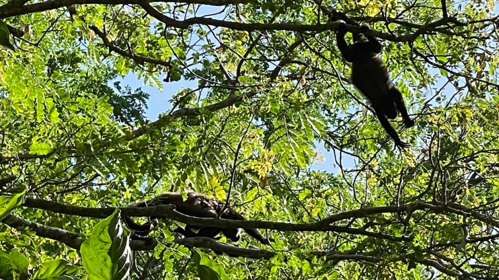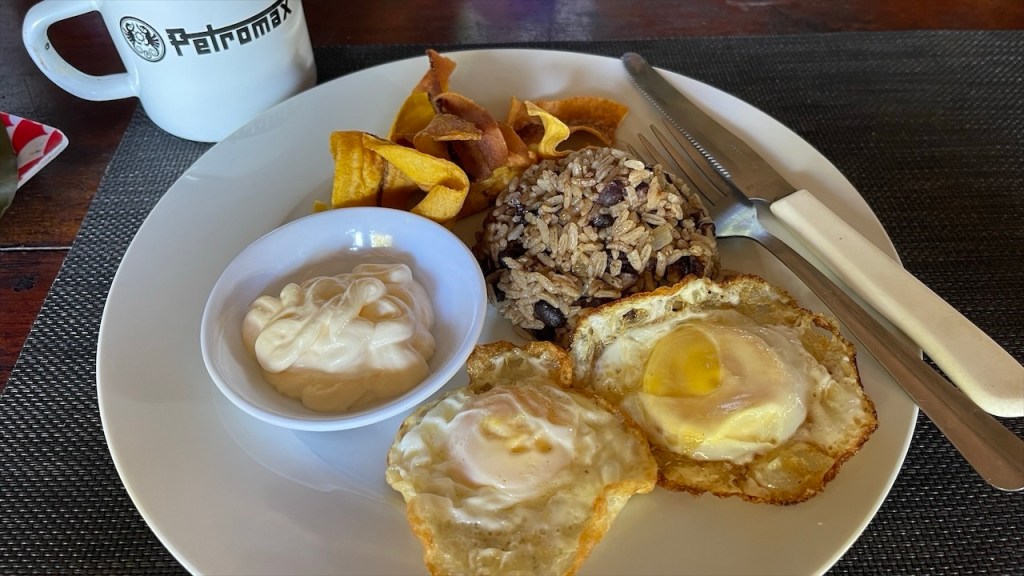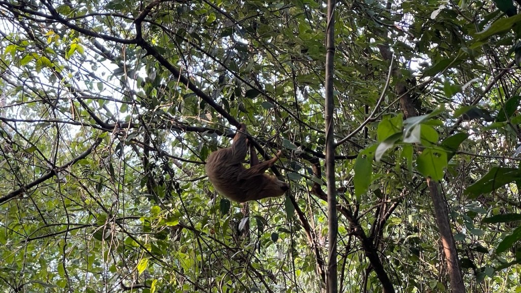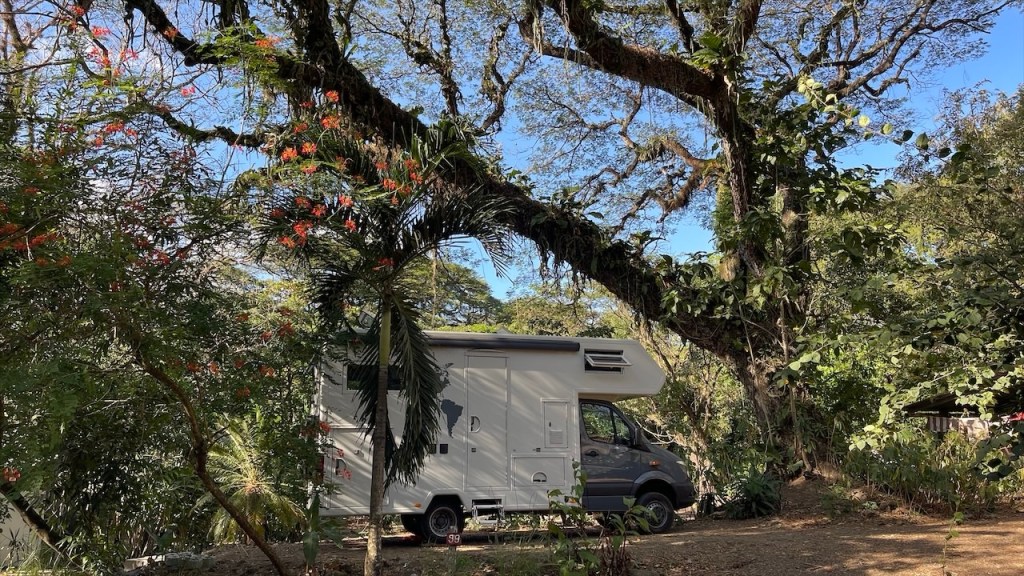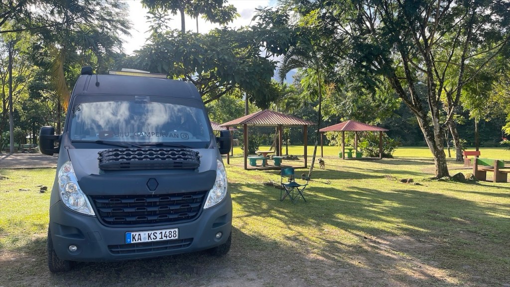 Nach ein paar entspannten Tagen am Strand machten wir uns am Donnerstag auf zu unserem letzten Stopp in Costa Rica: Dem Campingplatz Cabañas Cañas Castilla, der von den netten Schweizern Agi und Guido geführt wird. Ihr Grundstück liegt direkt an einem breiten Fluss und Simon konnte am Nachmittag darin nicht nur Otter sehen, sondern sogar 5 kleine Fische fangen. 😀 Witzigerweise trafen wir dort, mal wieder unabgesprochen, auch kurz auf Max und Merle die sich aber wenige Stunden später bereits zur Grenze begaben. Während der Wind unsere Wäsche trocknete und Simon angelte erkundete ich derweil einen der beiden Wanderwege, die sich auf dem gewaltigen Gelände befinden auf dem es auch einige hübsche Ferienwohnungen gibt. Nach dem ich die Pferde-, Hühner- und Gänseställe passiert hatte entdeckte ich relativ schnell ein paar Affen in den Bäumen. Wenige hundert Meter weiter turnte bereits die nächste Affenbande in den Wipfeln herum und auch einen großen Specht mit rotem Kopf konnte ich ausmachen. Als ich weiter oben das Flussbett überquerte hielt ich Ausschau nach Kaimanen, jedoch konnte ich keinen Alligator spotten. Machte aber nichts denn wieder ein paar Meter weiter schien ein Faultier regelrecht auf mich gewartet zu haben. Ich schätze, dass es wenige Minuten zuvor den Boden aufgesucht hatte um sich zu erleichtern und jetzt war es gerade wieder im Begriff, langsam seinen Baum hinaufzuklettern. Ich begegnete ihm fast auf Augenhöhe und sah ihm mindestens eine Viertelstunde lang bei seinem Aufstieg in die Baumwipfel zu. Was für ein grandioser Abschluss unserer Costa Rica Reise! 🤩 Am Abend führten wir dann noch einige nette Gespräche, unter anderem mit einem älteren Paar aus Lörrach das in entgegengesetzter Richtung zu uns unterwegs war. Außerdem konnte ich einer Schweizer Familie, die mit ihren drei Söhnen in einem Kastenwagen ähnlich unserem reist (wenngleich mit Aufstelldach), noch unsren Südamerikareiseführer vermachen. Und mit einem jungen, radreisenden Pärchen aus Holland konnten wir unsere letzten Colon gegen Cordoba, die Währung Nicaraguas, tauschen. 👍