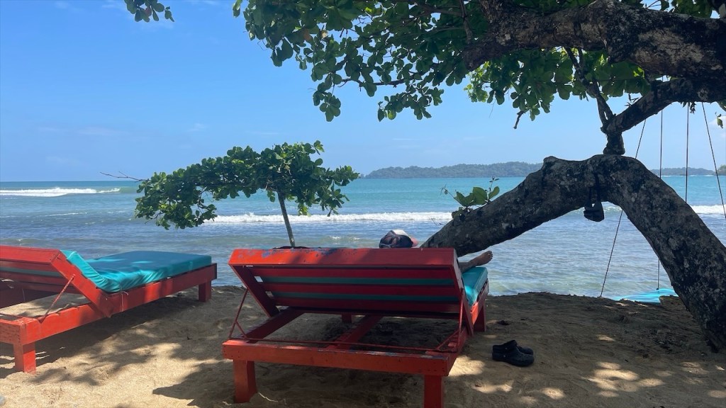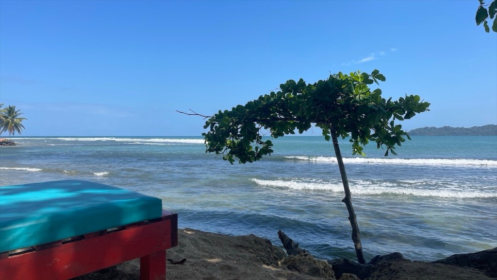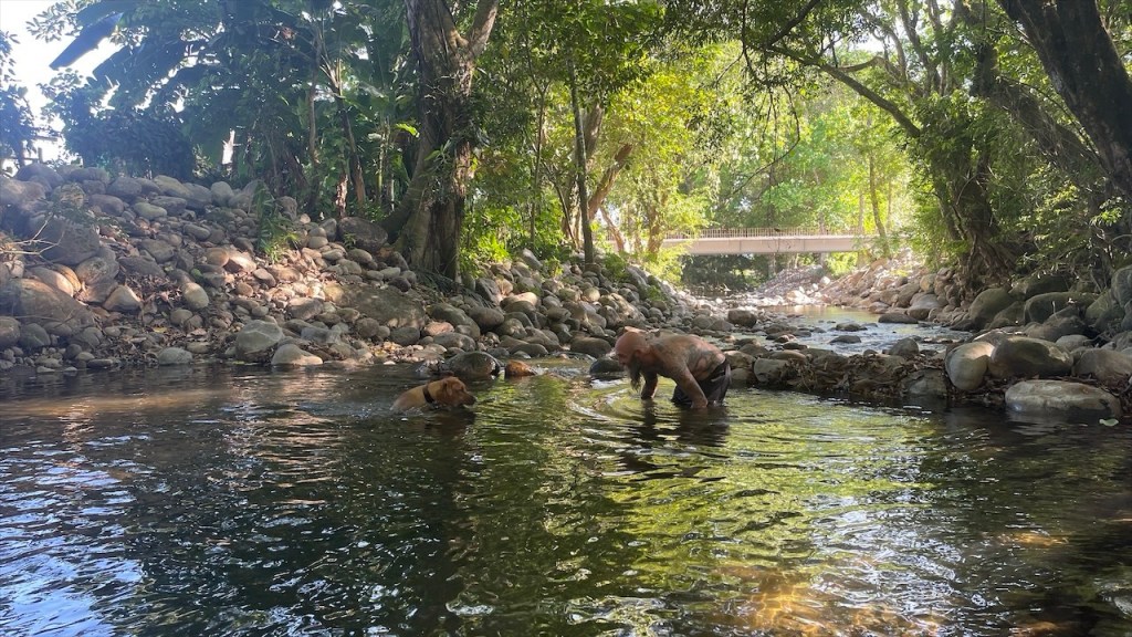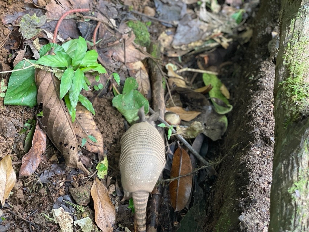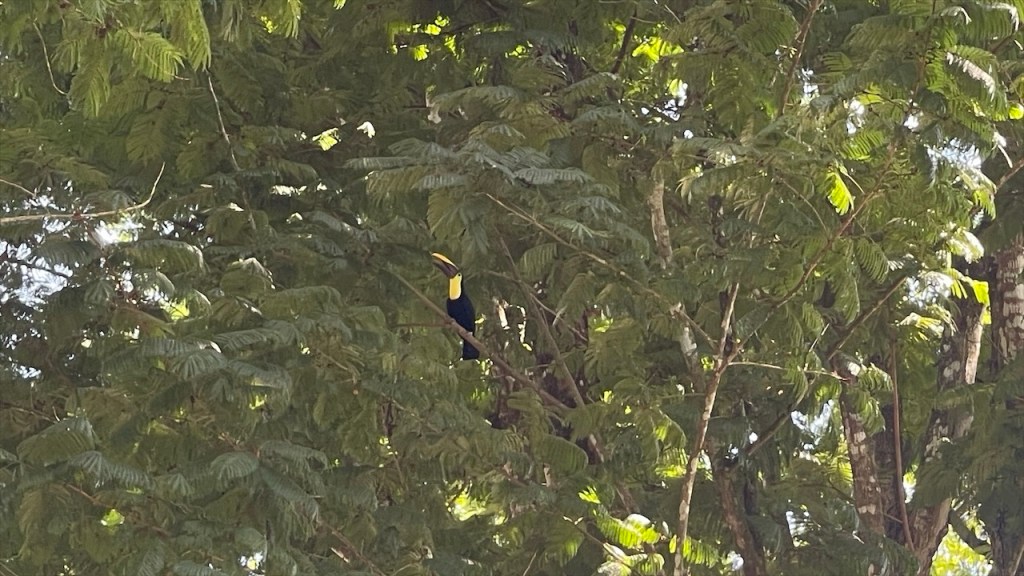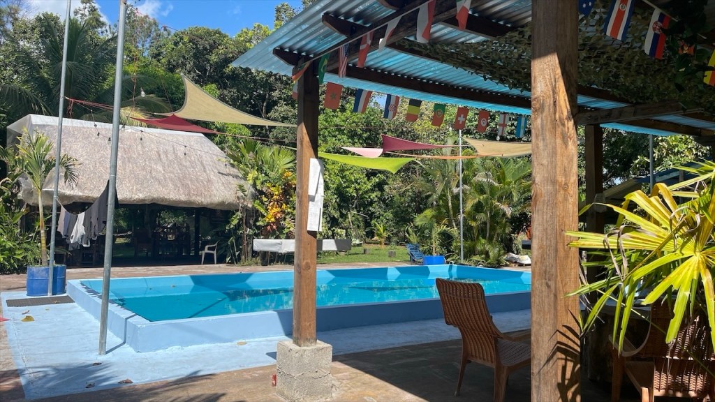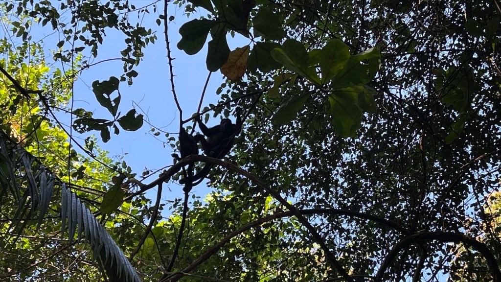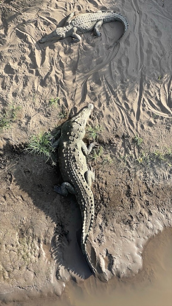 Nach ein paar entspannten Tagen am Strand machten wir uns am Donnerstag auf zu unserem letzten Stopp in Costa Rica: Dem Campingplatz Cabañas Cañas Castilla, der von den netten Schweizern Agi und Guido geführt wird. Ihr Grundstück liegt direkt an einem breiten Fluss und Simon konnte am Nachmittag darin nicht nur Otter sehen, sondern sogar 5 kleine Fische fangen. 😀 Witzigerweise trafen wir dort, mal wieder unabgesprochen, auch kurz auf Max und Merle die sich aber wenige Stunden später bereits zur Grenze begaben. Während der Wind unsere Wäsche trocknete und Simon angelte erkundete ich derweil einen der beiden Wanderwege, die sich auf dem gewaltigen Gelände befinden auf dem es auch einige hübsche Ferienwohnungen gibt. Nach dem ich die Pferde-, Hühner- und Gänseställe passiert hatte entdeckte ich relativ schnell ein paar Affen in den Bäumen. Wenige hundert Meter weiter turnte bereits die nächste Affenbande in den Wipfeln herum und auch einen großen Specht mit rotem Kopf konnte ich ausmachen. Als ich weiter oben das Flussbett überquerte hielt ich Ausschau nach Kaimanen, jedoch konnte ich keinen Alligator spotten. Machte aber nichts denn wieder ein paar Meter weiter schien ein Faultier regelrecht auf mich gewartet zu haben. Ich schätze, dass es wenige Minuten zuvor den Boden aufgesucht hatte um sich zu erleichtern und jetzt war es gerade wieder im Begriff, langsam seinen Baum hinaufzuklettern. Ich begegnete ihm fast auf Augenhöhe und sah ihm mindestens eine Viertelstunde lang bei seinem Aufstieg in die Baumwipfel zu. Was für ein grandioser Abschluss unserer Costa Rica Reise! 🤩 Am Abend führten wir dann noch einige nette Gespräche, unter anderem mit einem älteren Paar aus Lörrach das in entgegengesetzter Richtung zu uns unterwegs war. Außerdem konnte ich einer Schweizer Familie, die mit ihren drei Söhnen in einem Kastenwagen ähnlich unserem reist (wenngleich mit Aufstelldach), noch unsren Südamerikareiseführer vermachen. Und mit einem jungen, radreisenden Pärchen aus Holland konnten wir unsere letzten Colon gegen Cordoba, die Währung Nicaraguas, tauschen. 👍