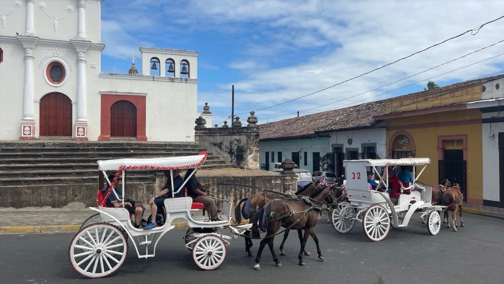Während Max und Merle sich am nächsten Morgen von uns verabschiedeten, um die 12:00 Uhr Fähre zurück aufs Festland zu erwischen, bestellten wir bei unserer Gastfamilie noch einmal Frühstück. Diesmal entschieden wir uns für Pancakes mit frischem Obst und auch dieses Gericht schmeckte vorzüglich und war mehr als üppig. Wir nutzten noch einmal unser SUP und schwammen im See, bevor auch wir uns am Folgetag von dem idyllischen Platz verabschiedeten. Via WhatsApp hatte ich uns diesmal sicherheitshalber einen Platz auf der Fähre reserviert welche pünktlich um 10:00 Uhr in Moyogalpa ablegte. Wieder auf der anderen Seite angelangt machten wir uns direkt auf den Weg in die schöne Kolonialstadt Granada, die in etwa eine Autostunde vom Fähranleger entfernt lag. Dort angekommen parkten wir unseren Van auf dem neuen, 24h bewachten Parkplatz des Centro Comercial. Hier gibt es u.a. ein Kleinfeld zum Fußballspielen, blitzblanke Toiletten und einen Food Court. Außerdem gestattete uns der Sicherheitsmann, nach dem wir die Parkgebühr in Höhe von 150 Cordoba (3,50€) beglichen hatten, auch prompt die Übernachtung. Das Stadtzentrum war fußläufig schnell erreicht und da wir Hunger hatten, und noch dazu Valentinstag war, ließen wir es uns bei Kathy’s Waffle House erstmal gut gehen. 😋 Danach hatten wir wieder genug Energie für die Stadtbesichtigung. Das Highlight ist sicherlich die schöne, gelb-rote Kathedrale aber auch das alte Kloster ist hübsch anzusehen. Genauso wie die vielen Pferdekutschen, mit denen man als Tourist eine einstündige Stadtrundfahrt unternehmen kann. Wir liefen noch bis zum Ufer des 160km langen Nicaraguasees, bevor wir wieder kehrt machten und uns auf den Nachhauseweg begaben.