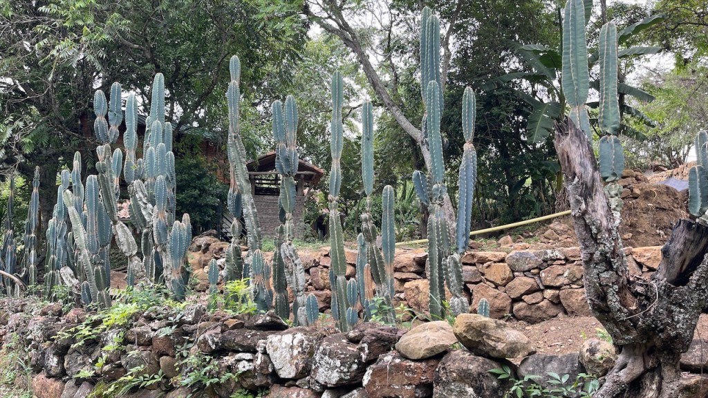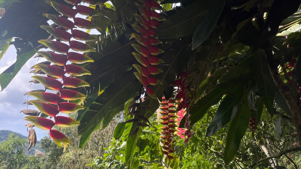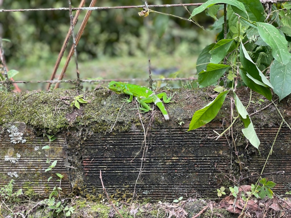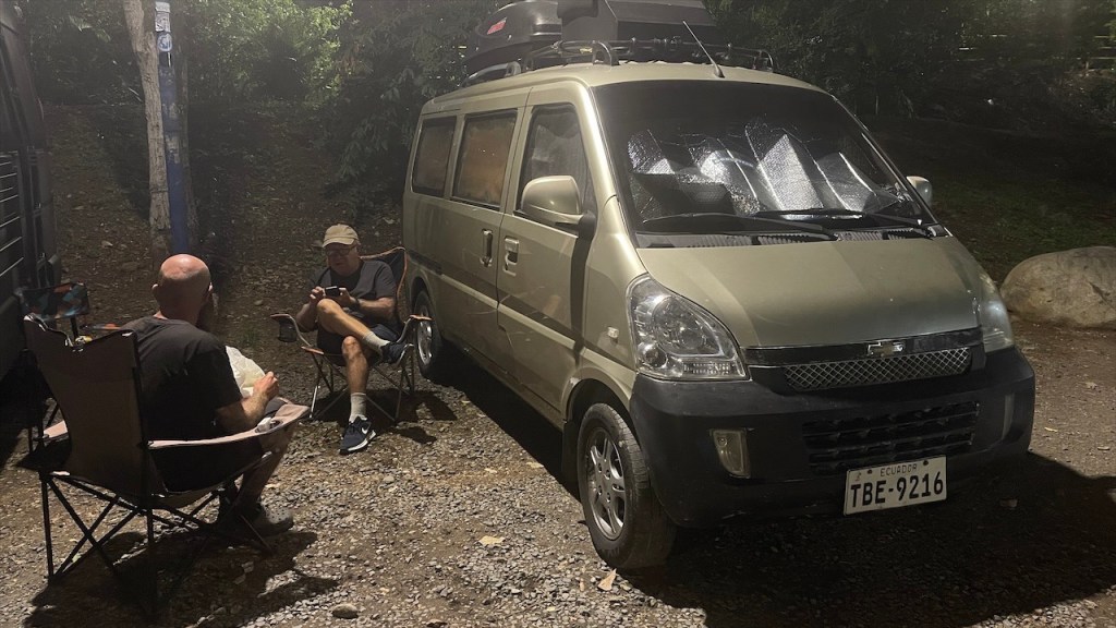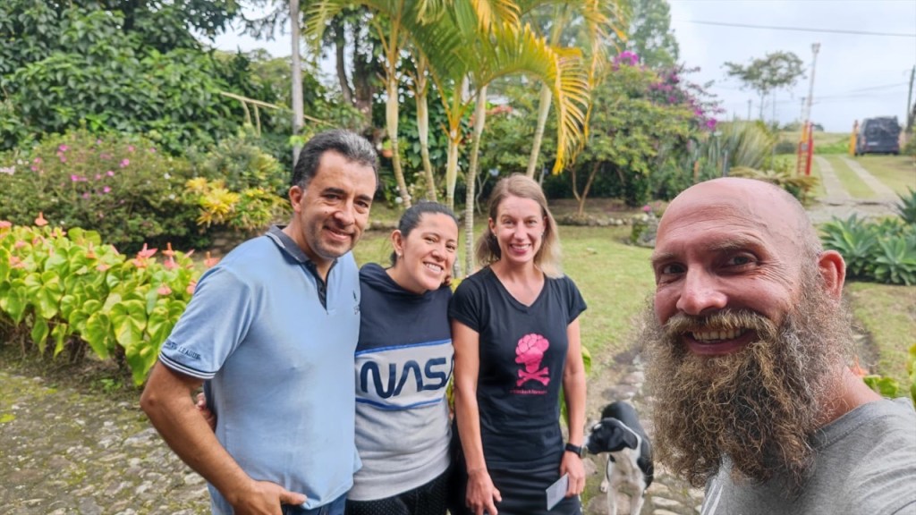 Da uns Wilson am Tag zuvor von einem nur ein Kilometer außerhalb gelegenen Weg erzählt hatte, der zu noch schöneren Felsformationen führen sollte, machten wir uns am nächsten Vormittag auf die Suche danach. Jedoch konnten wir keinen Weg finden und auch der Pfad zum Mirador oberhalb des Ortes war mit Toren und Vorhängeschlössern versperrt. 😕 Wir entschieden uns, wenigstens noch einen Kaffee zu trinken und da der Ort wirklich sehr untouristisch ist hatten wir auch nicht viele Wahlmöglichkeiten. Im einzigen Café mit Terrasse trafen wir auf zwei weitere Reisende, Kristina aus Celle in Deutschland mit ihrem Mann Leonardo aus Honduras. Die beiden sind mit ihrem bis unters Dach vollgepackten Kleinwagen, einem Kia Picanto, und Zelt seit etwa drei Monaten unterwegs. Ihr Roadtrip soll sie von Honduras durch ganz Südamerika führen und da die beiden bereits Rentner sind haben sie dafür auch alle Zeit der Welt. Wir unterhielten uns lange Zeit, der Einfachheit halber (zwecks deutscher Sprache) mehr mit Kristina, und bemerkten dabei gar nicht wie die Zeit verging. Erst gegen 14 Uhr kehrten wir zum Van zurück wo ich seit Ewigkeiten mal wieder unsere Außendusche aus der Heckkiste kramte. Nur um kurzdarauf feststellen zu müssen, dass die Pumpe wohl Feuchtigkeit gezogen und zwischenzeitlich völlig verrostet war. Haarewaschen vorm Van viel somit aus. 😧 Schade um die Außendusche, diese hätten wir in der nächsten Zeit bestimmt öfter nutzen können. Nach einigem hin und her rang ich mich dann doch noch dazu durch die kalte, aber extrem schön gemachte Außendusche auf dem Campingplatz Tranquilandia zu nutzen. Diese bestand nämlich aus einer Natursteinwand, die über und über mit diversen Grünpflanzen sowie Orchideen geschmückt war. 🤩