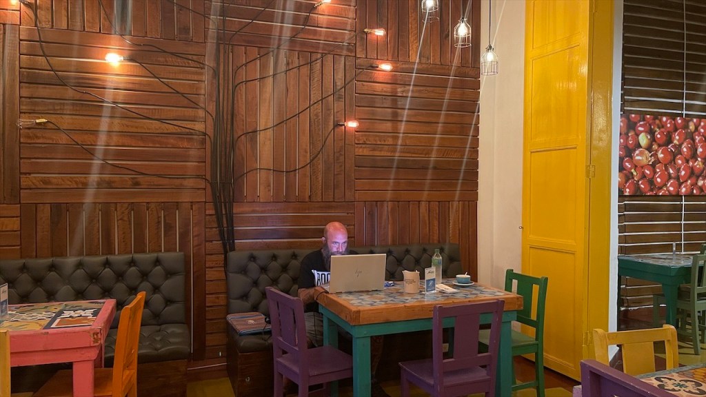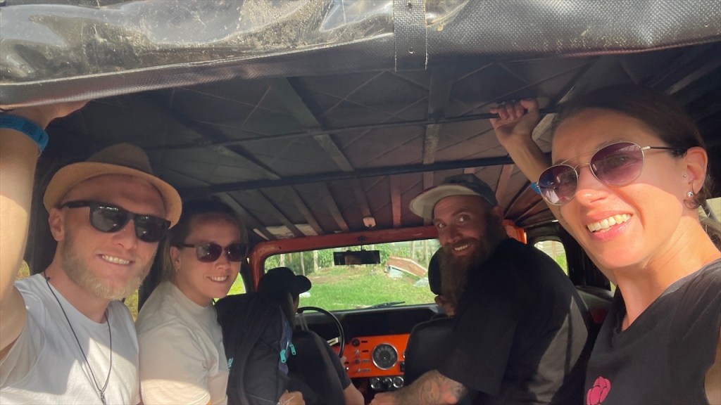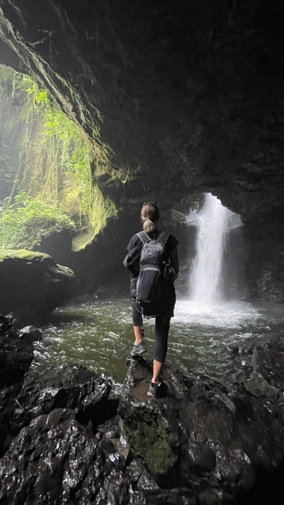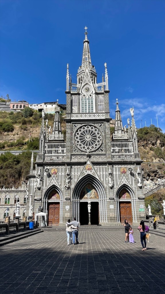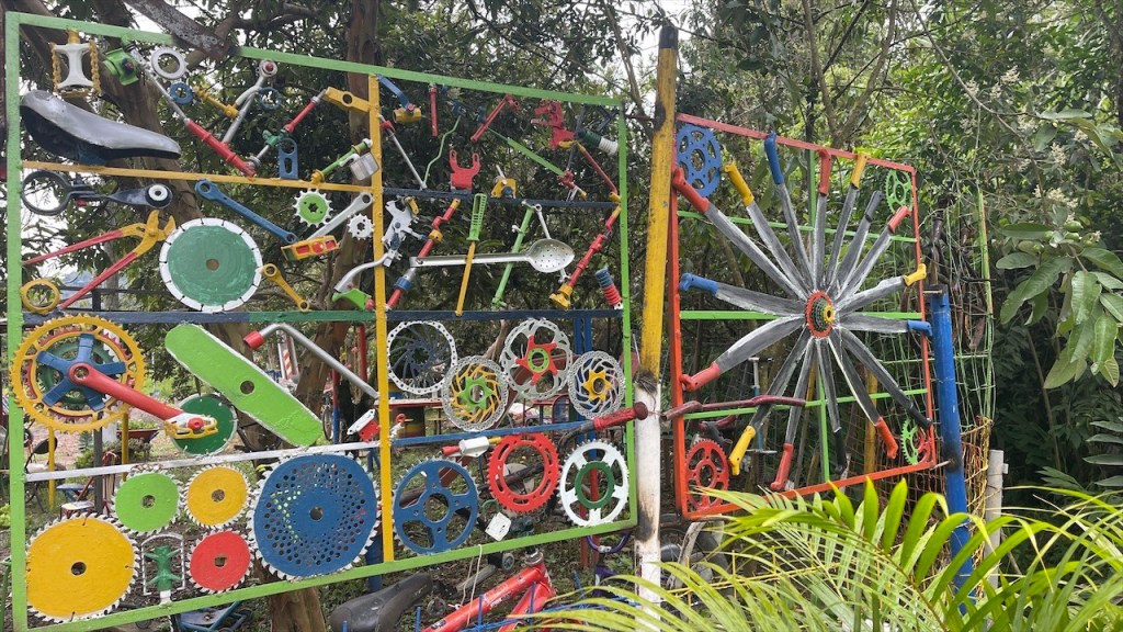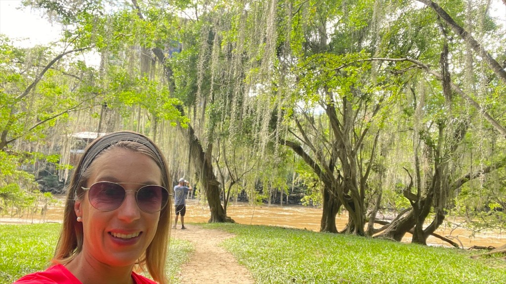 Da uns Wilson am Tag zuvor von einem nur ein Kilometer außerhalb gelegenen Weg erzählt hatte, der zu noch schöneren Felsformationen führen sollte, machten wir uns am nächsten Vormittag auf die Suche danach. Jedoch konnten wir keinen Weg finden und auch der Pfad zum Mirador oberhalb des Ortes war mit Toren und Vorhängeschlössern versperrt. 😕 Wir entschieden uns, wenigstens noch einen Kaffee zu trinken und da der Ort wirklich sehr untouristisch ist hatten wir auch nicht viele Wahlmöglichkeiten. Im einzigen Café mit Terrasse trafen wir auf zwei weitere Reisende, Kristina aus Celle in Deutschland mit ihrem Mann Leonardo aus Honduras. Die beiden sind mit ihrem bis unters Dach vollgepackten Kleinwagen, einem Kia Picanto, und Zelt seit etwa drei Monaten unterwegs. Ihr Roadtrip soll sie von Honduras durch ganz Südamerika führen und da die beiden bereits Rentner sind haben sie dafür auch alle Zeit der Welt. Wir unterhielten uns lange Zeit, der Einfachheit halber (zwecks deutscher Sprache) mehr mit Kristina, und bemerkten dabei gar nicht wie die Zeit verging. Erst gegen 14 Uhr kehrten wir zum Van zurück wo ich seit Ewigkeiten mal wieder unsere Außendusche aus der Heckkiste kramte. Nur um kurzdarauf feststellen zu müssen, dass die Pumpe wohl Feuchtigkeit gezogen und zwischenzeitlich völlig verrostet war. Haarewaschen vorm Van viel somit aus. 😧 Schade um die Außendusche, diese hätten wir in der nächsten Zeit bestimmt öfter nutzen können. Nach einigem hin und her rang ich mich dann doch noch dazu durch die kalte, aber extrem schön gemachte Außendusche auf dem Campingplatz Tranquilandia zu nutzen. Diese bestand nämlich aus einer Natursteinwand, die über und über mit diversen Grünpflanzen sowie Orchideen geschmückt war. 🤩