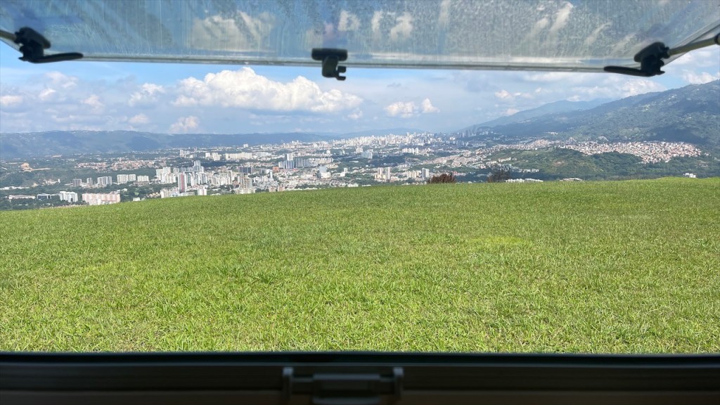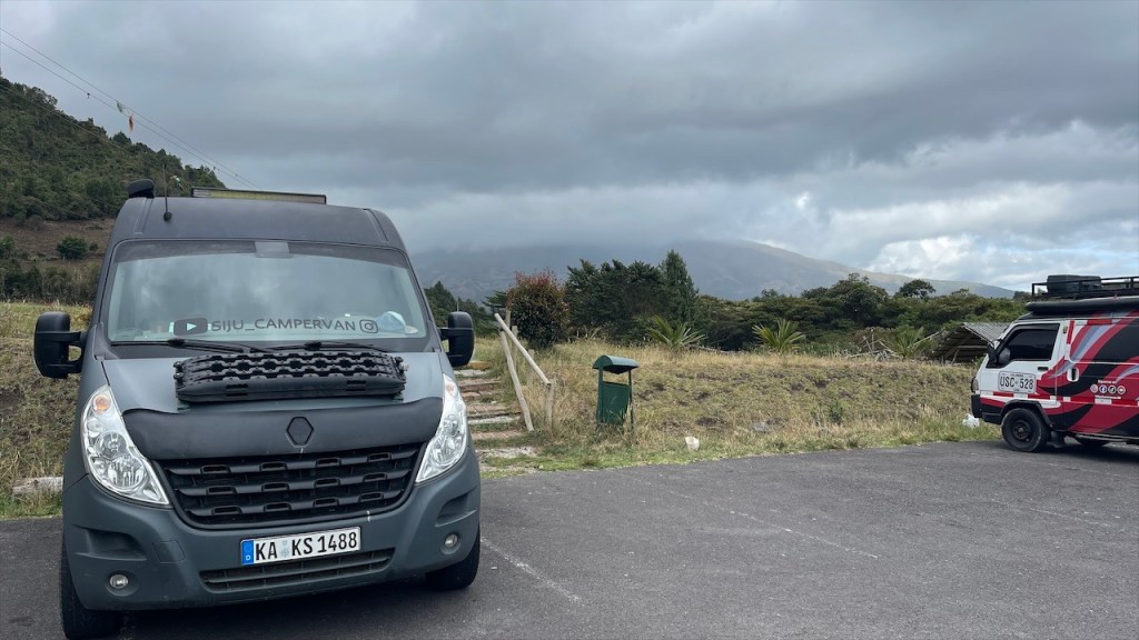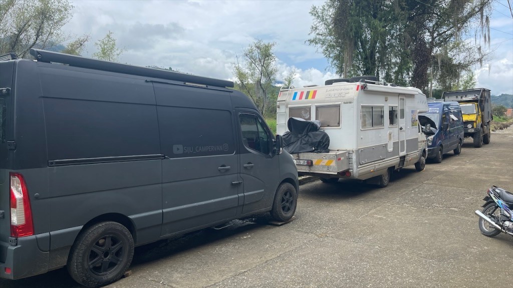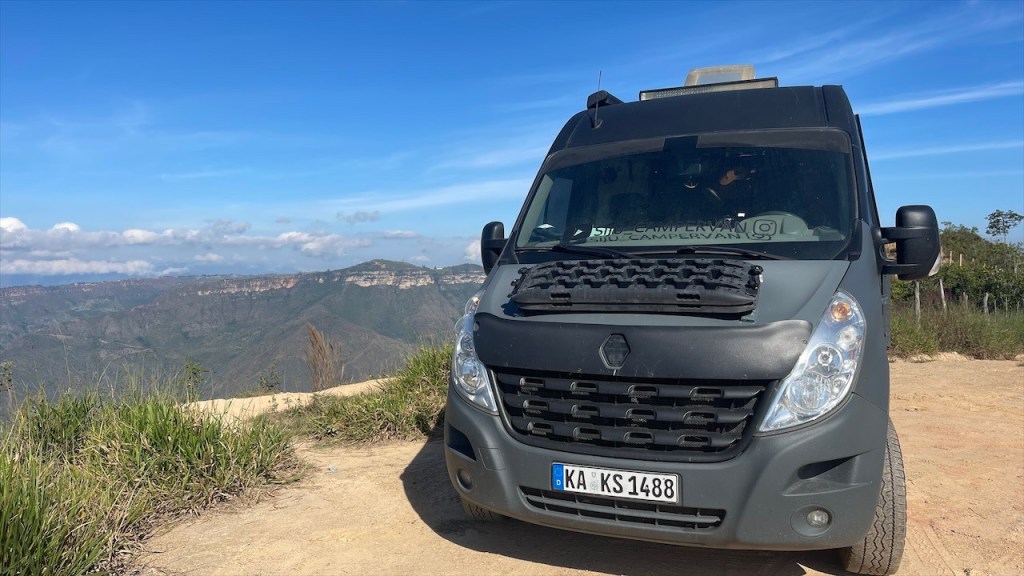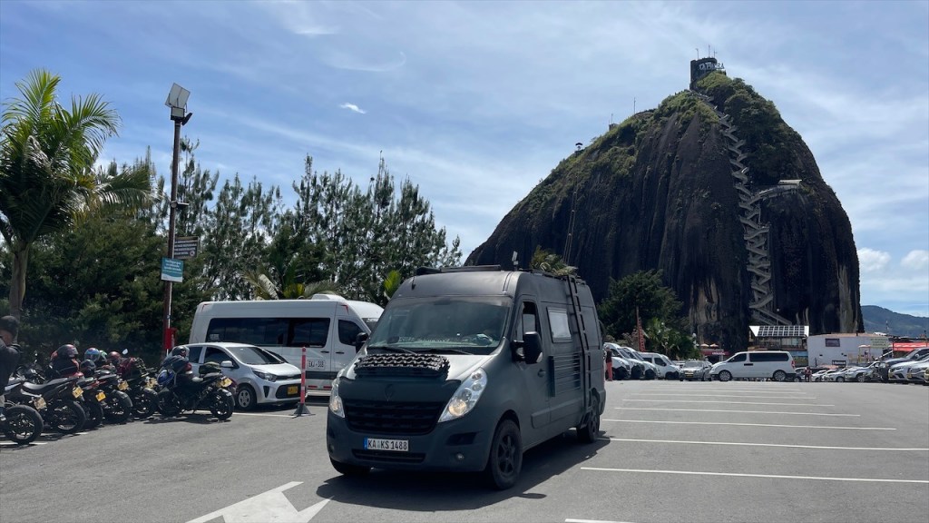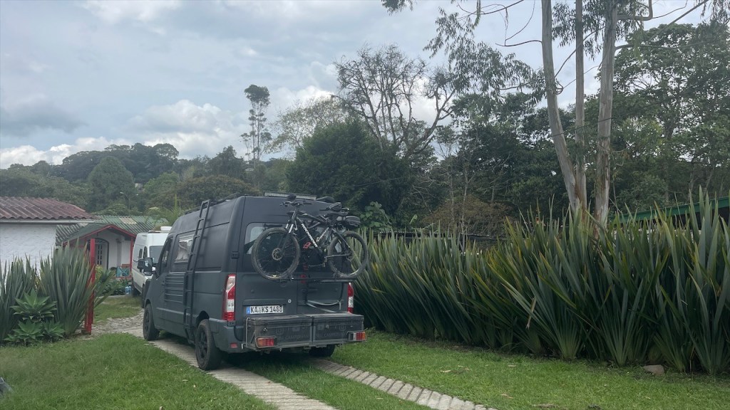 Nach dem wir am Vortag noch die Eindrücke unseres Paragliedflugs hatten sacken lassen war es am Samstag dann auch schon wieder Zeit, den wunderschönen Stellplatz oberhalb des Canyons zu verlassen. Gegen 11:00 Uhr machten wir uns auf den 65 Kilometer langen Rückweg nach Bucaramanga, für den wir laut Navi etwa eine Stunde hätten benötigen sollen. Da es in der Nacht aber relativ stark und langanhaltend geregnet hatte gab es einige Steinschläge, die längere Staus mit sich brachten. An einem Abschnitt war die Straße sogar teilweise mit Schlamm überzogen worden weswegen wir mindestens eine halbe Stunde auf die Weiterfahrt warten mussten. So kam es, dass wir den Stellplatz bei einem Hostel erst am späten Nachmittag erreichten. Dieser befand sich nur knapp eineinhalb Kilometer über dem Paragliedspot, an dem wir vor einigen Tagen übernachtet hatten. Beim Hostel Casa de Campo Ruitoque gab es neben einem Pool auch heiße Duschen sowie eine Waschmaschine. Allerdings hatten diese Annehmlichkeiten auch einen stolzen Preis von 50k COP (= 11 €) pro Nacht weshalb wir gerne früher angekommen wären. 😕