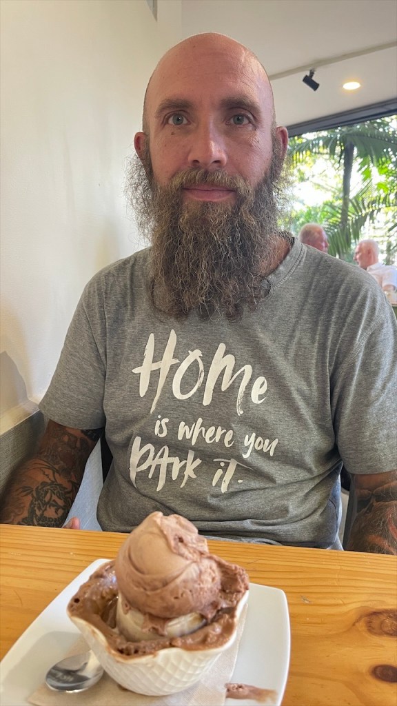 Am nächsten Morgen schaltete ich direkt eine Maschine Wäsche an, damit diese später in der Sonne noch genug Zeit zum Trocknen hatte. Anschließend machte ich mich im ganz passablen WLAN an einige Uploads und vor der Dusche schaffte ich es sogar noch die Yoga Matte auszurollen. 💪 Nachmittags kochten wir uns noch einen Kaffee und füllten unseren Wassertank auf, bevor wir gegen 16:00 Uhr das Hostel verließen um nicht für eine weitere Nacht zahlen zu müssen. Diese verbrachten wir alternativ neben einem Stadtpark, an dem wir widererwarten eine super ruhige und entspannte Nacht hatten. 😴